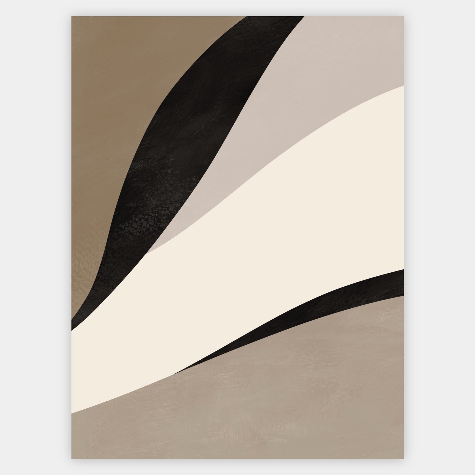 Poster with abstract graphics in Scandinavian style in beige-black shades "Flow" No. 1. The poster is sold without a frame, with the option to order a thin wooden frame with a thickness of 1.2 cm. There are three color options to choose from - white , black and oak design.