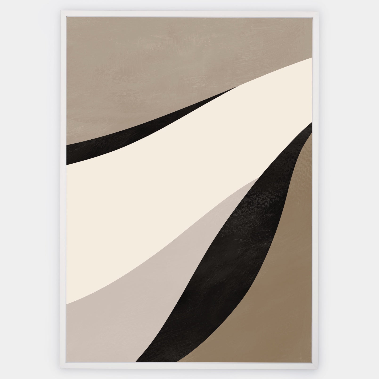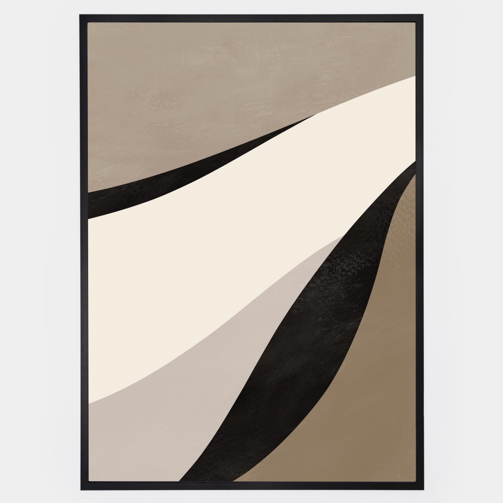 Poster with abstract graphics in Scandinavian style in beige-black shades "Flow" No. 3. The poster is sold without a frame, with the option to order a thin wooden frame with a thickness of 1.2 cm. There are three color options to choose from - white , black and oak design.