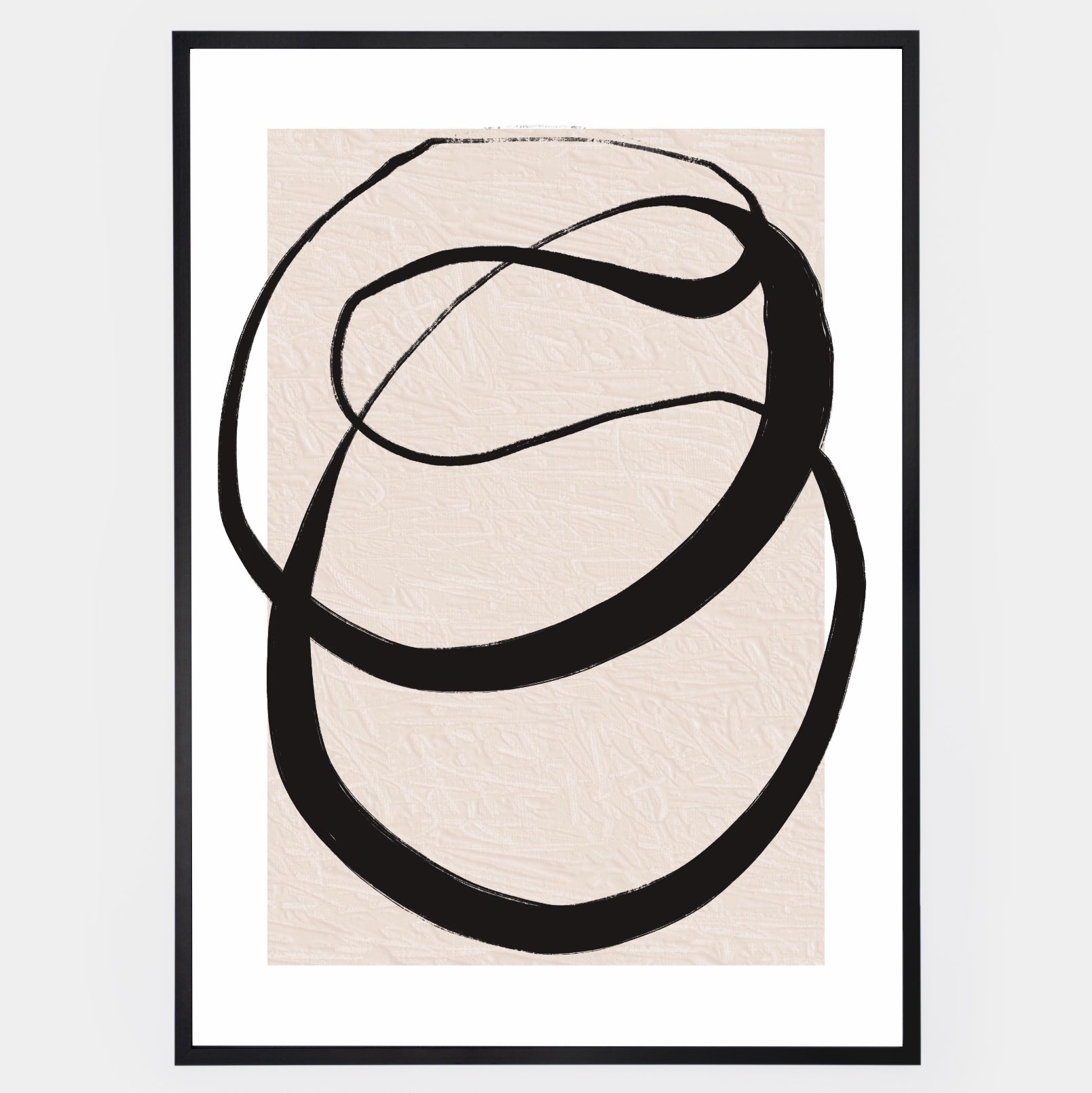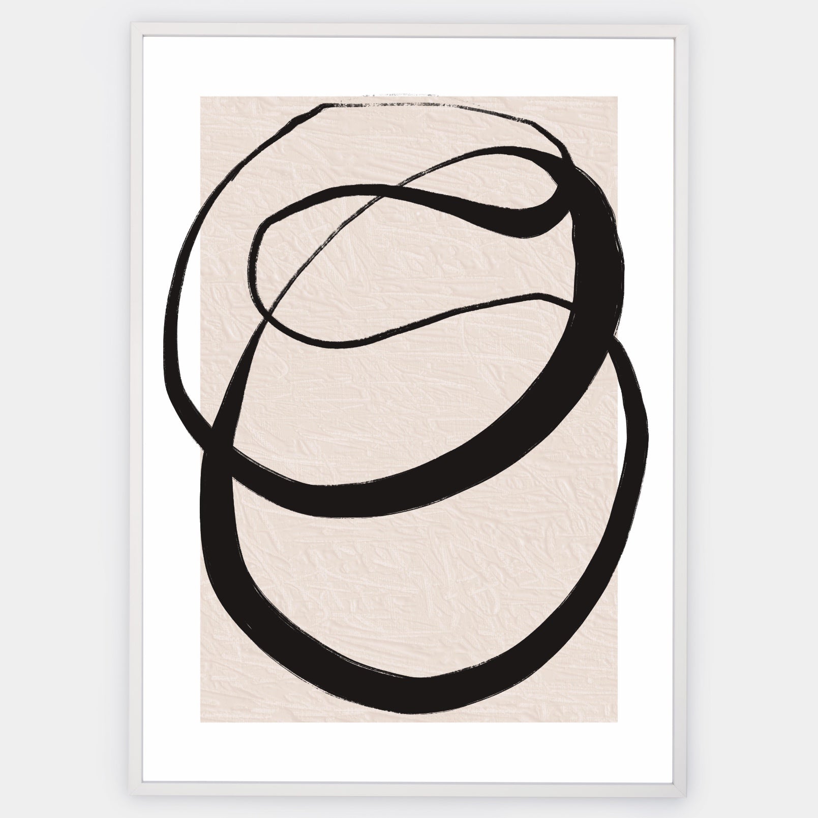 Abstract graphic poster "Lines on Beige" No. 1. The poster is sold without a frame, with the option to order a thin wooden frame with a thickness of 1.2 cm. There are three color options to choose from - white , black and oak design.