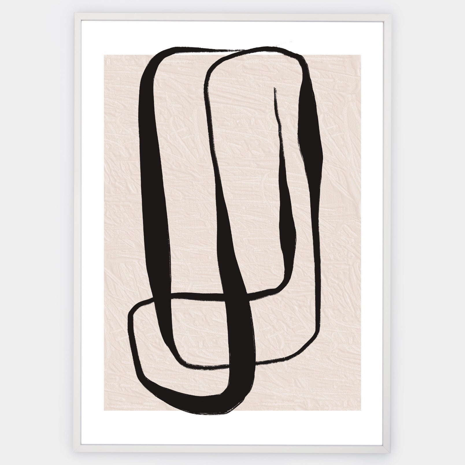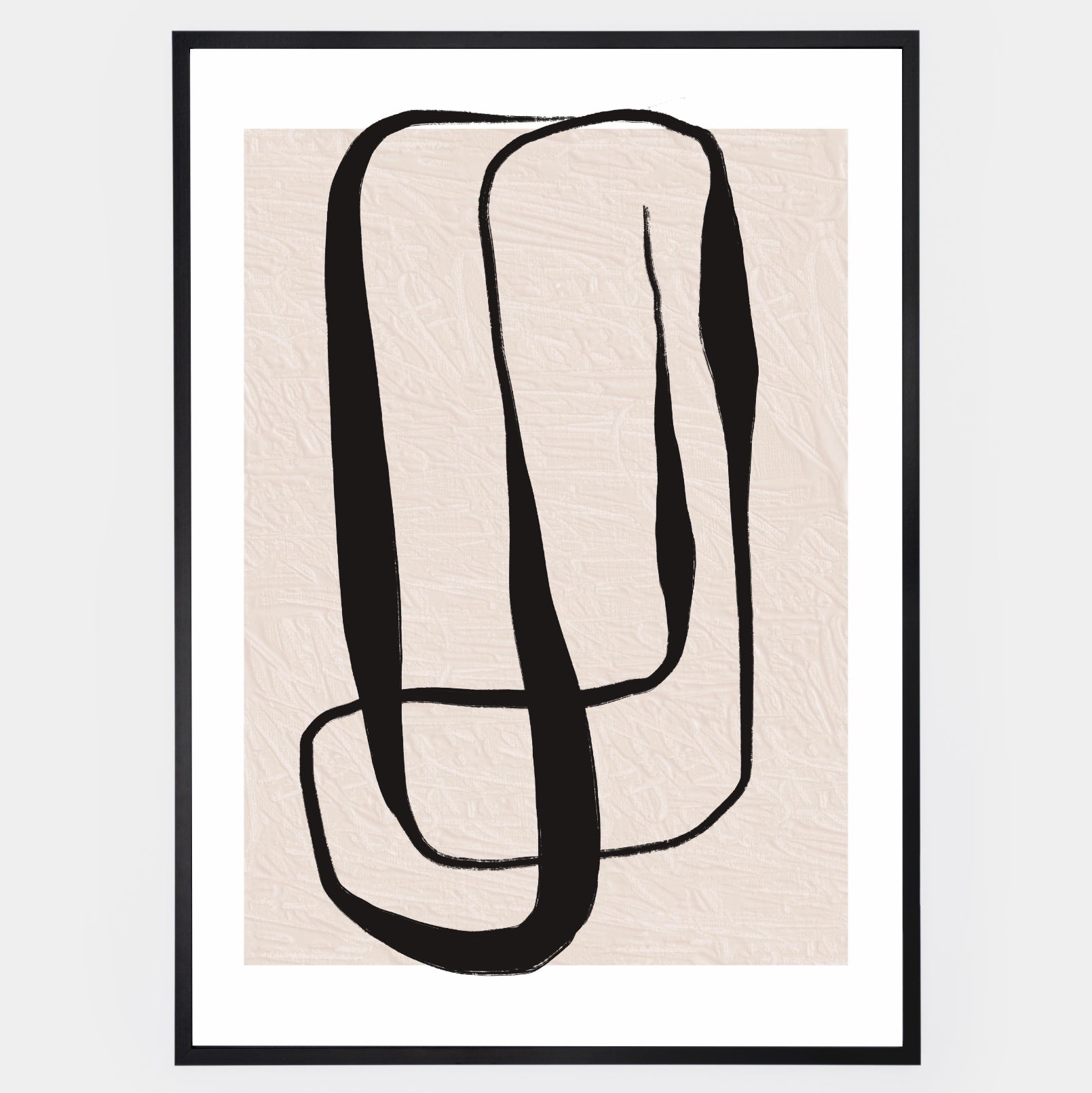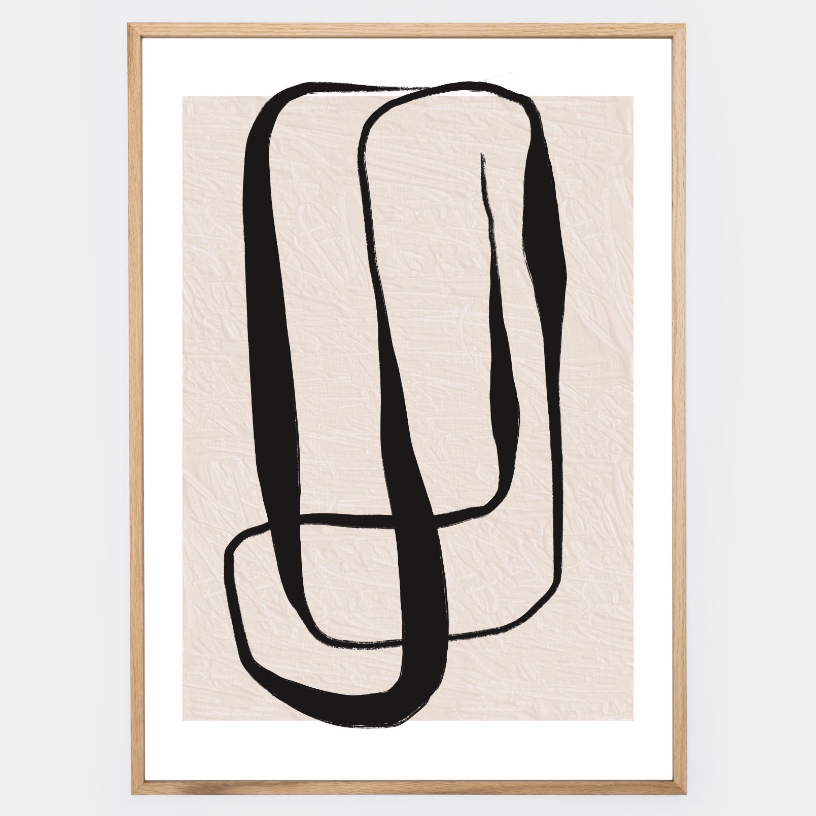 Abstract graphic poster "Lines on Beige" No. 2. The poster is sold without a frame, with the option to order a thin wooden frame with a thickness of 1.2 cm. There are three color options to choose from - white , black and oak design.