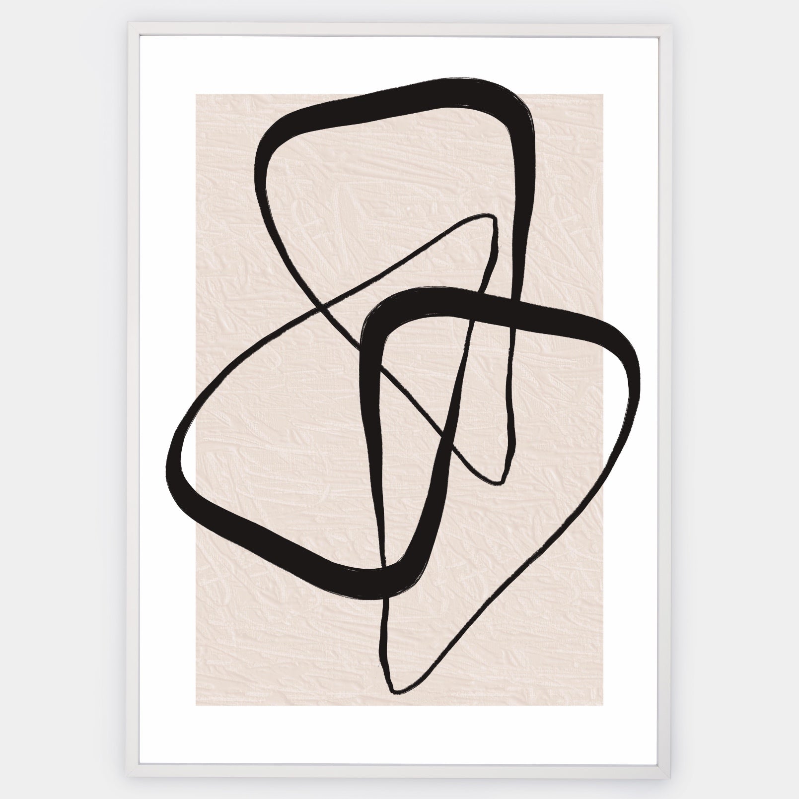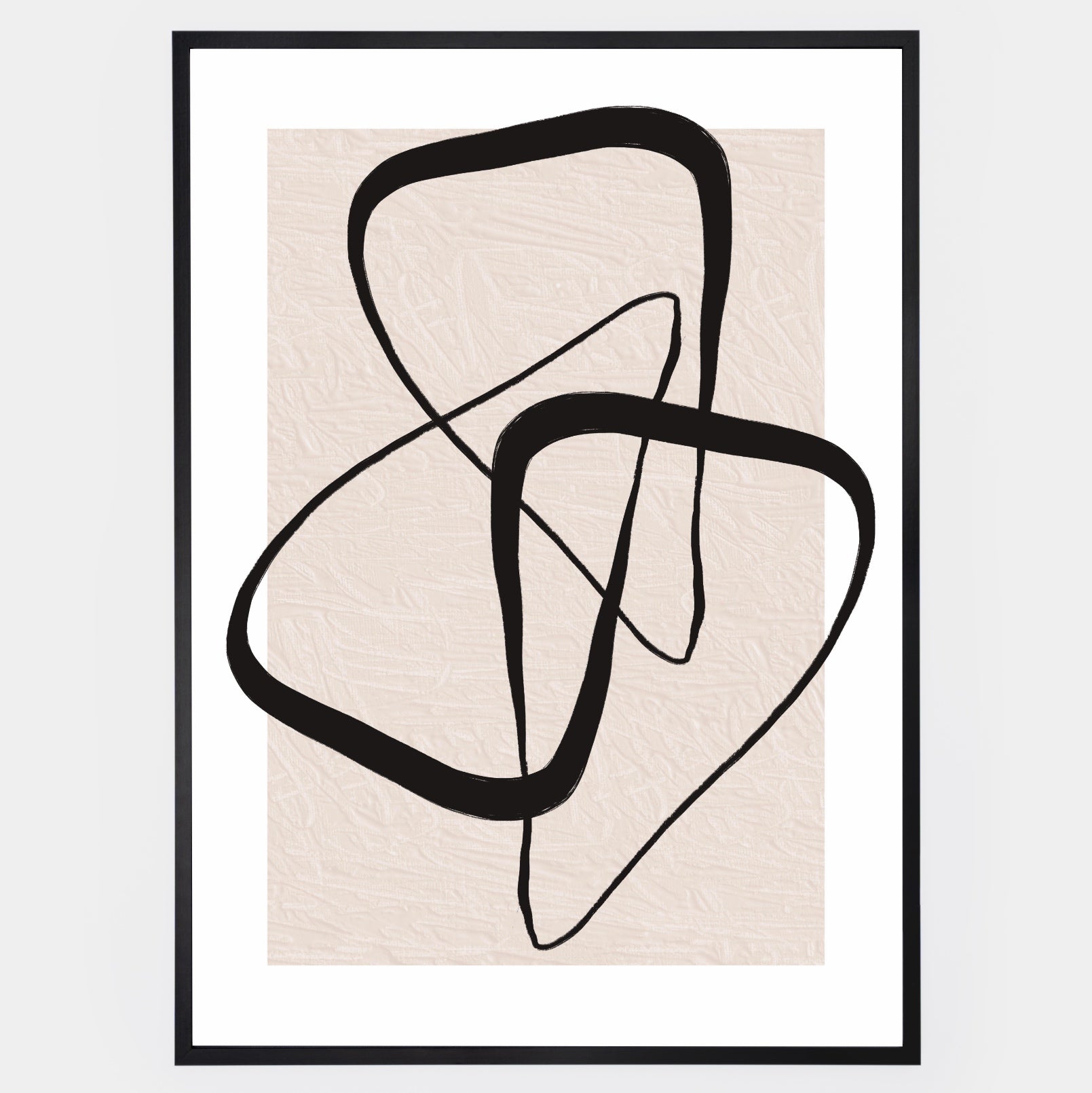 Abstract graphic poster "Lines on Beige" No. 3. The poster is sold without a frame, with the option to order a thin wooden frame with a thickness of 1.2 cm. There are three color options to choose from - white , black and oak design.