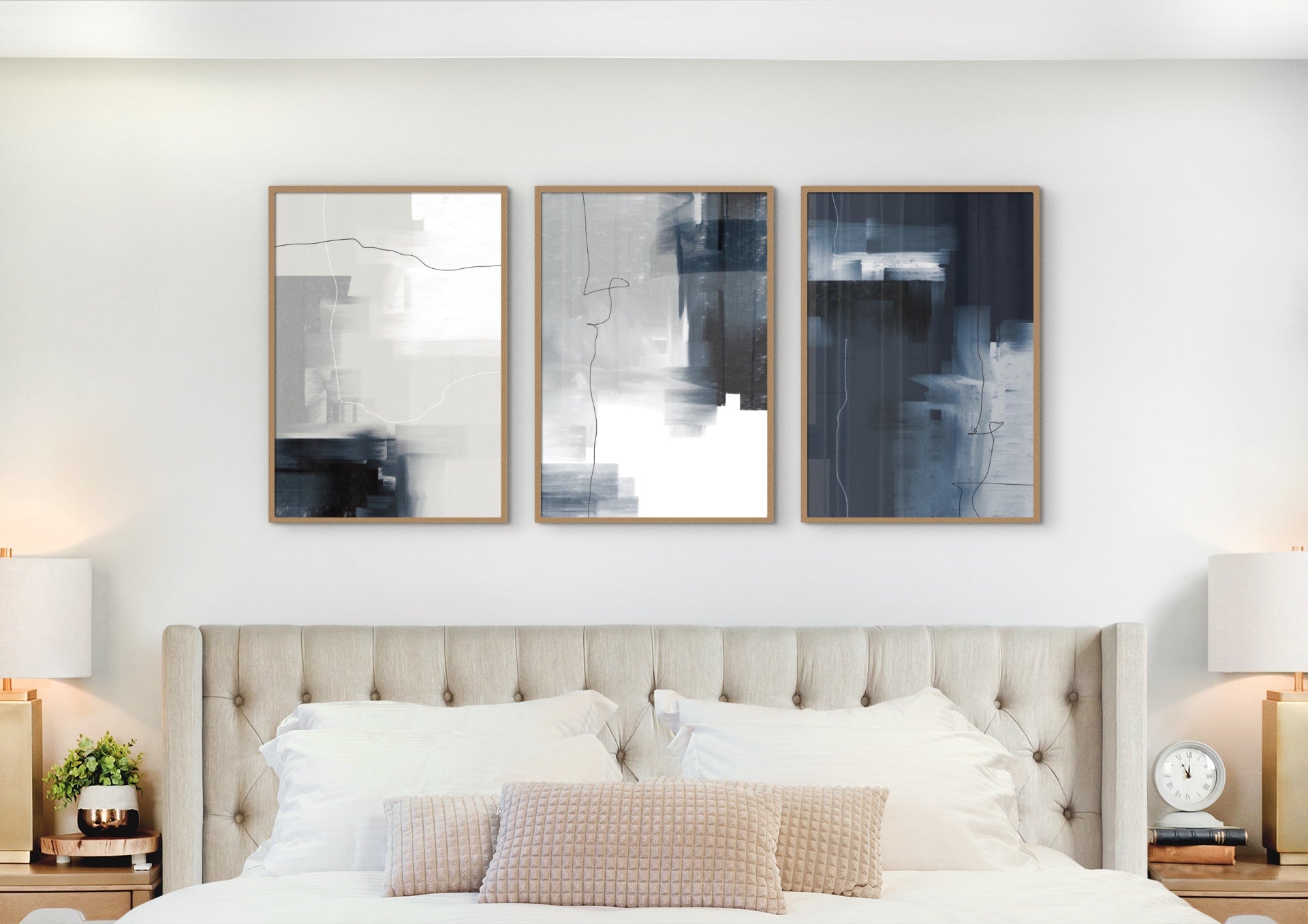 Poster with abstract graphics in Scandinavian style "Navy" No. 3. The poster is sold without a frame, with the option to order a thin wooden frame with a thickness of 1.2 cm. There are three color options to choose from - white , black and oak design.