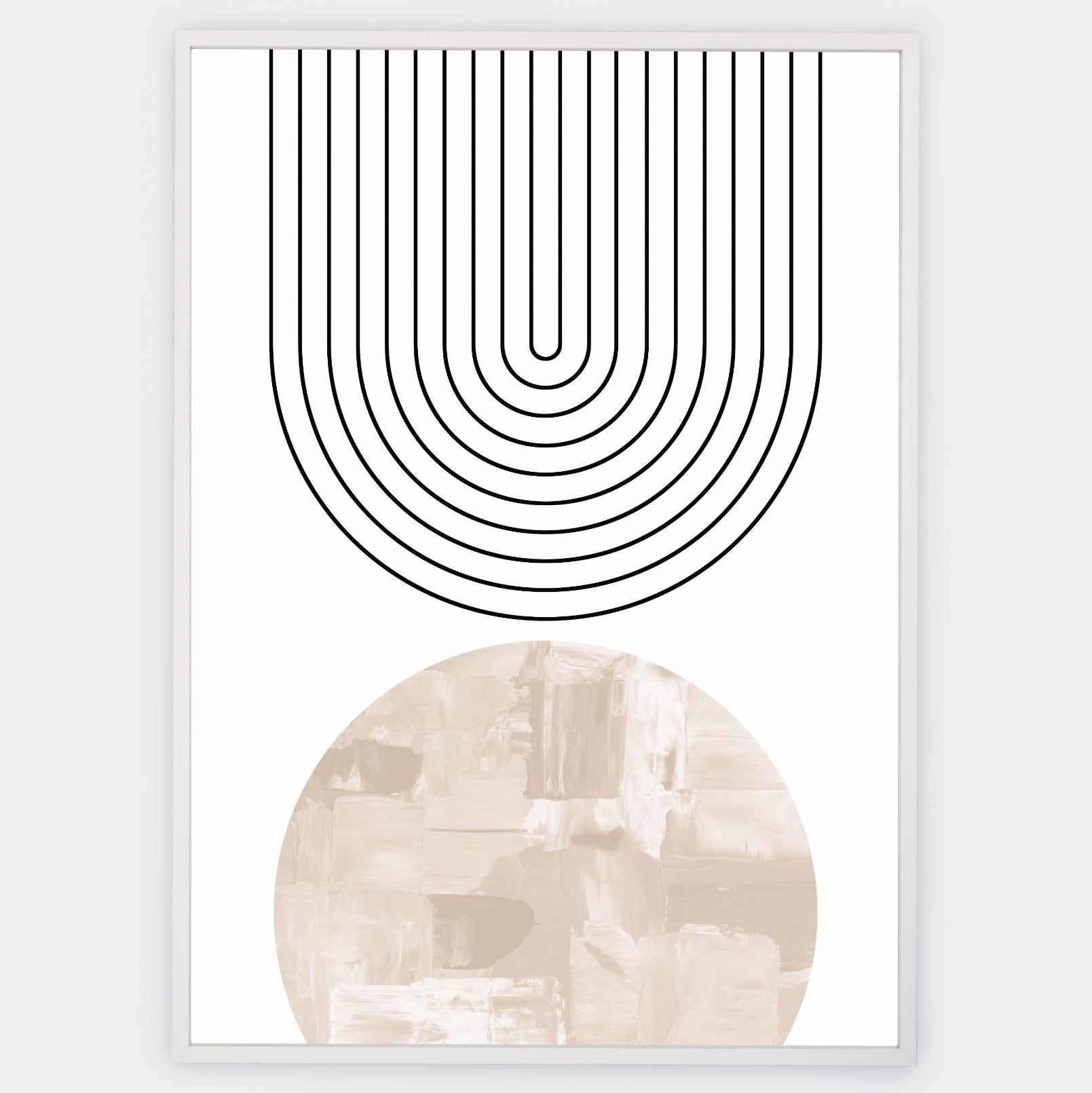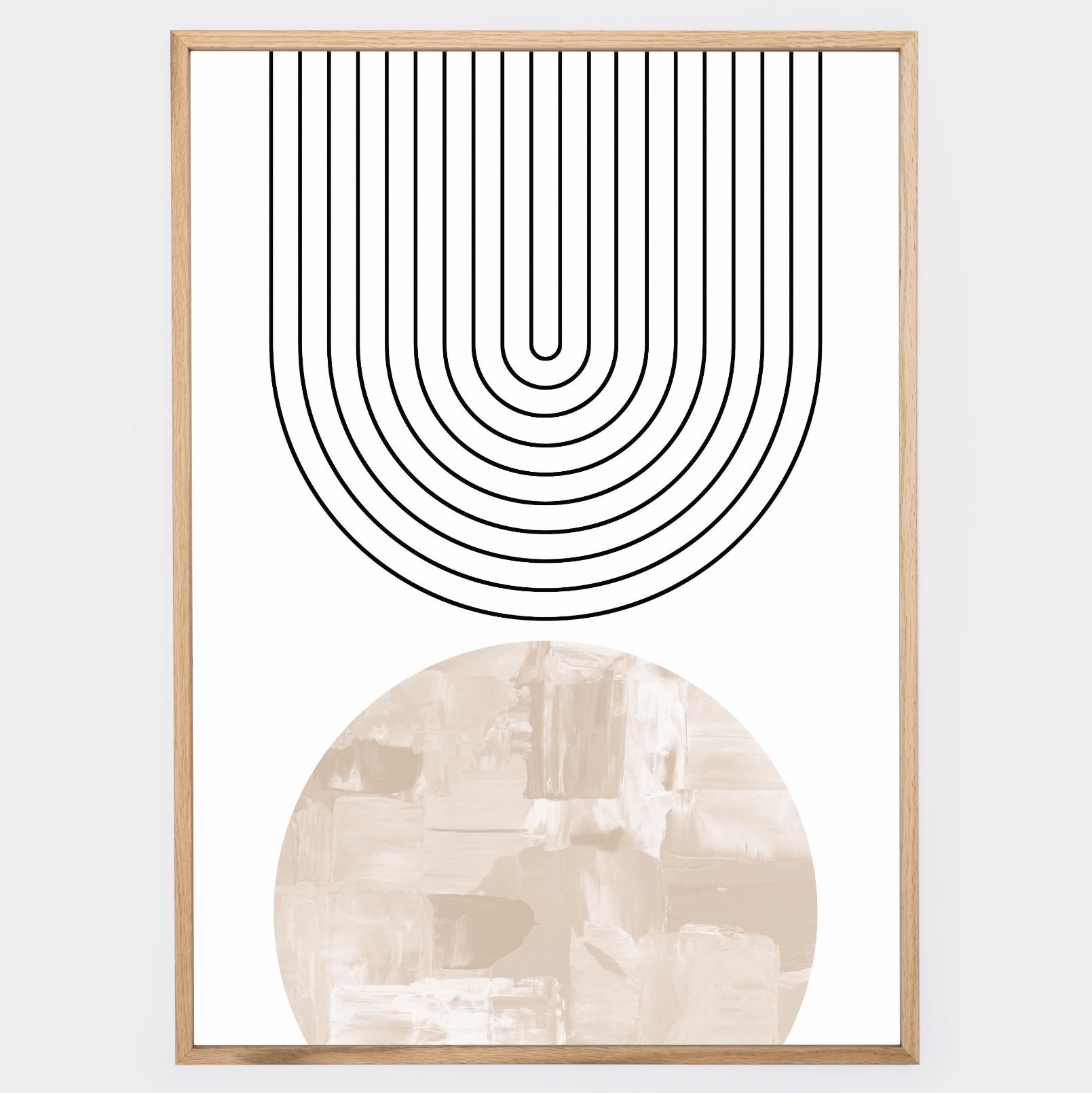 Boho poster with arc and circle graphics "Beige" 1. The poster is sold without a frame, with the option to order a thin wooden frame with a thickness of 1.2 cm. There are three color options to choose from - white , black and oak design.