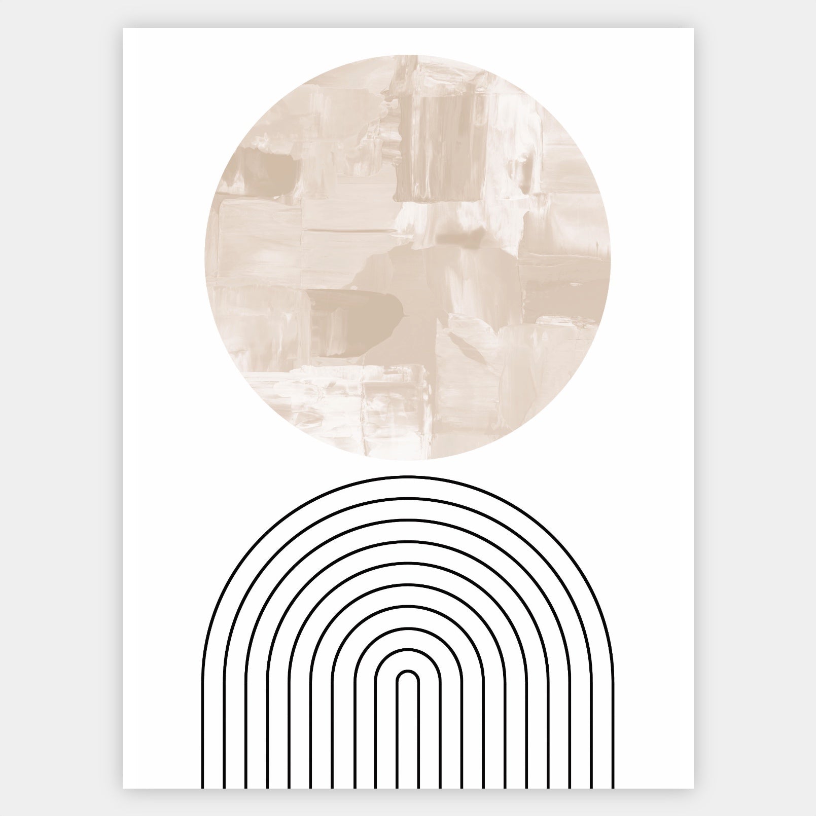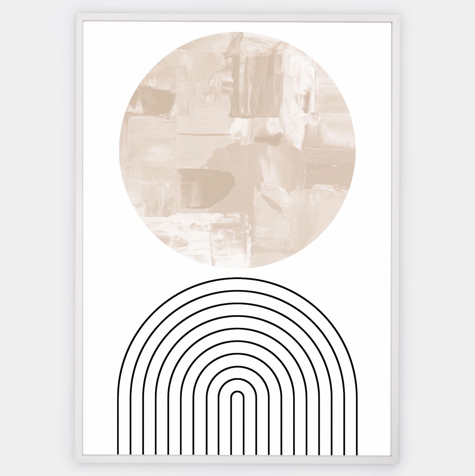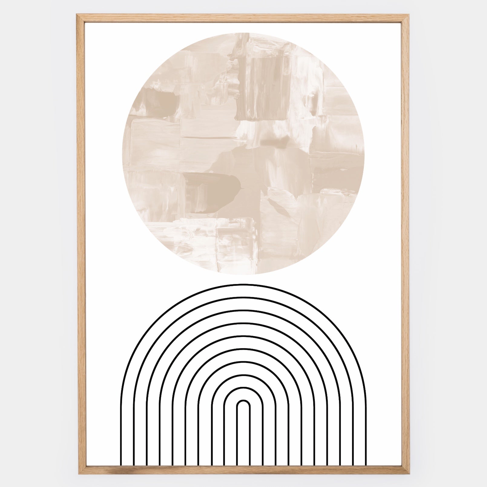 Boho poster with arc and circle graphics "Beige" 3. The poster is sold without a frame, with the option to order a thin wooden frame with a thickness of 1.2 cm. There are three color options to choose from - white , black and oak design.