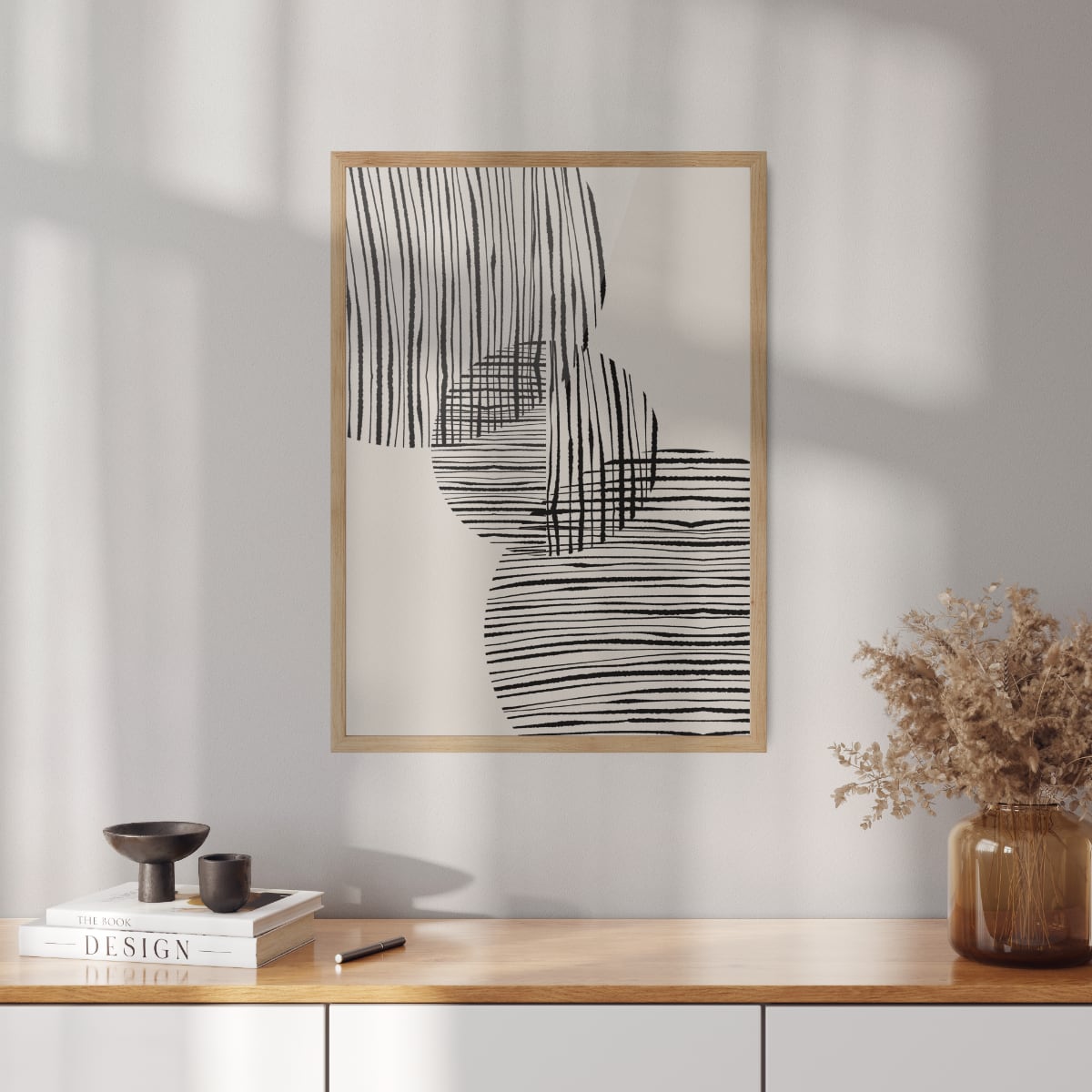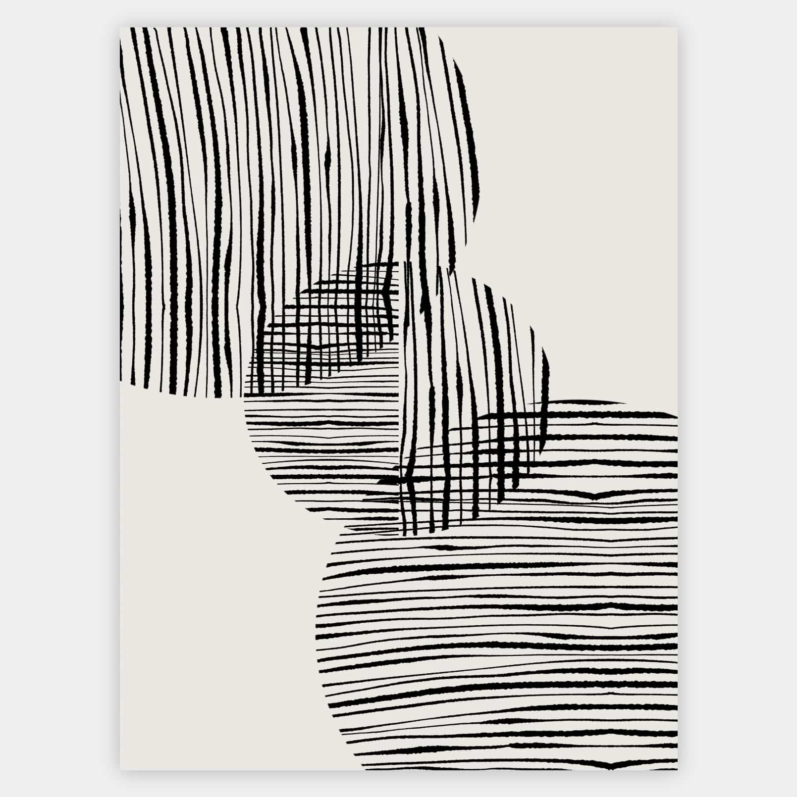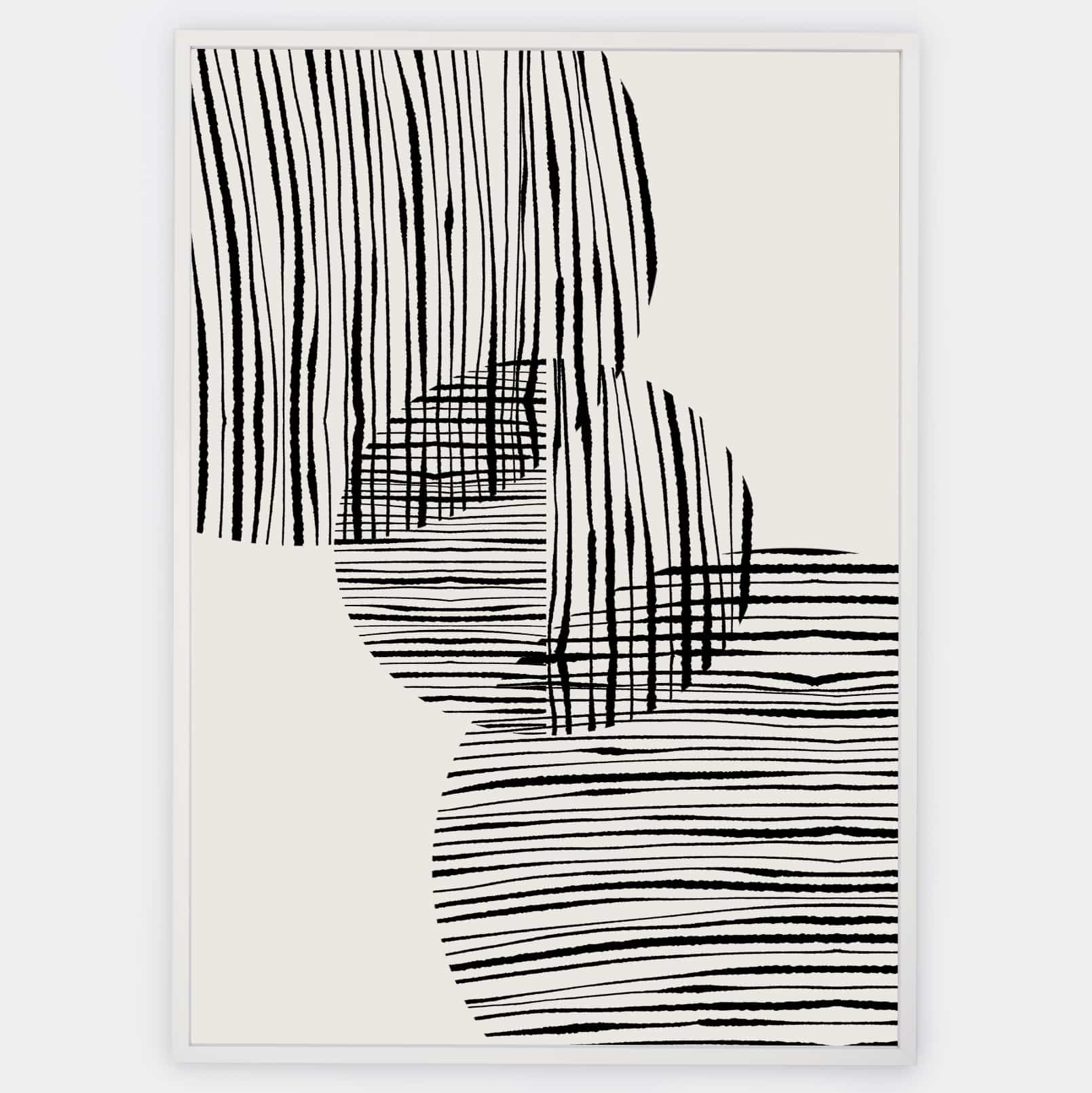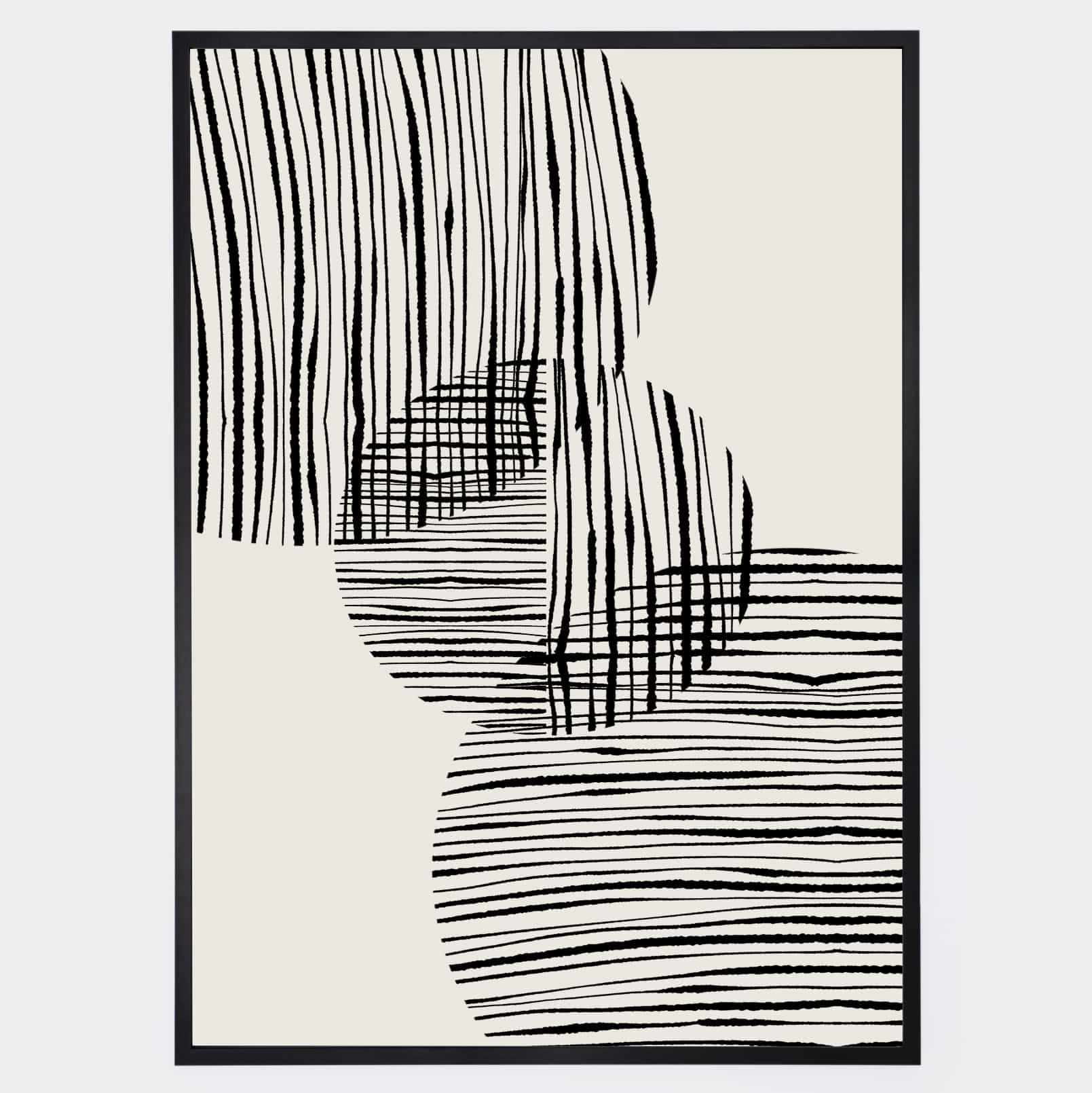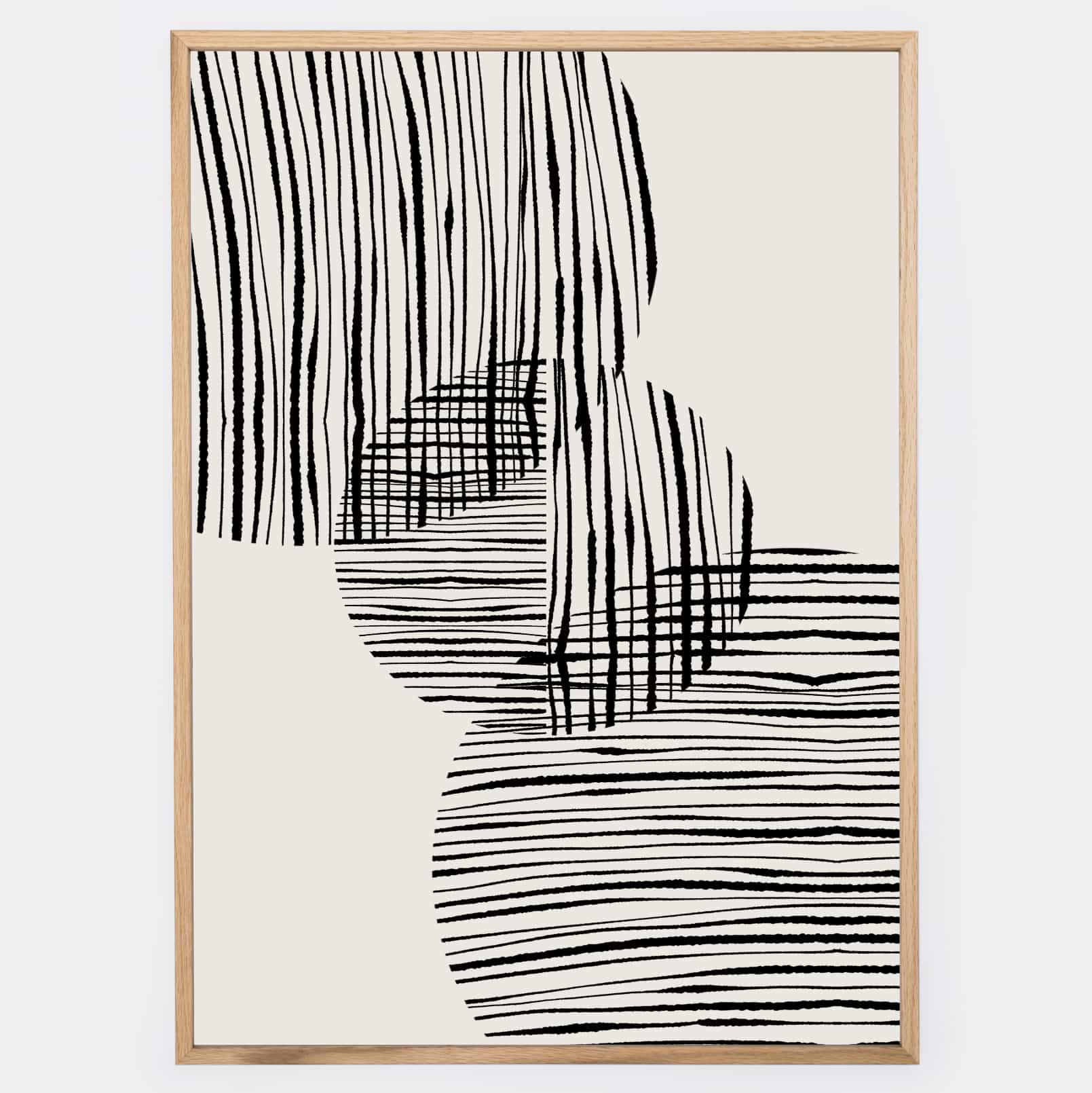 Boho poster with graphic "Fabric circles" No. 1 on a beige background. The poster is sold without a frame, with the option to order a thin wooden frame with a thickness of 1.2 cm. There are three color options to choose from - white , black and oak design.