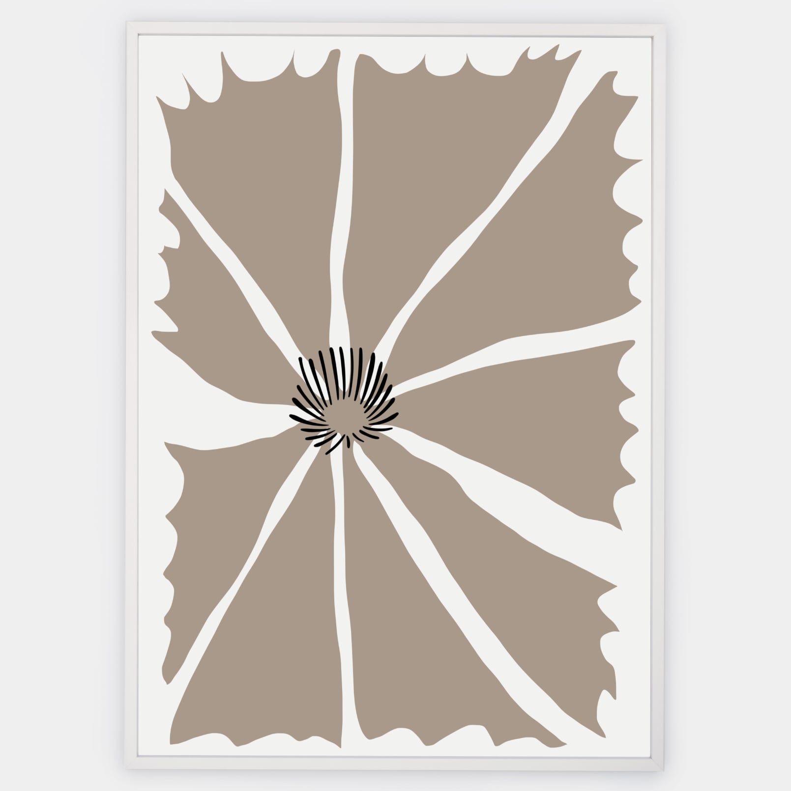 Boho poster with graphic "Flower head" No. 1 on a beige background. The poster is sold without a frame, with the option to order a thin wooden frame with a thickness of 1.2 cm. There are three color options to choose from - white , black and oak design.