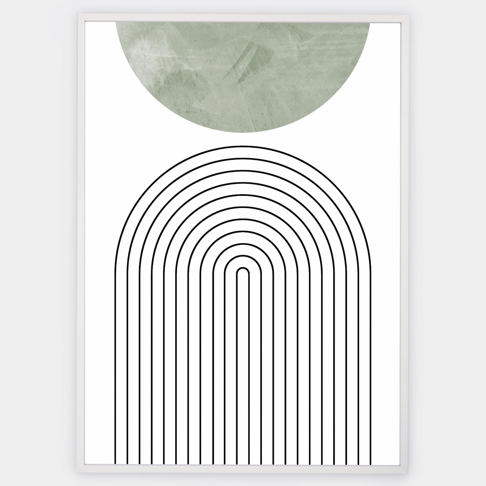 Boho poster with graphics of arches and circles "Green" 3. The poster is sold without a frame, with the option to order a thin wooden frame with a thickness of 1.2 cm. There are three color options to choose from - white , black and oak design.