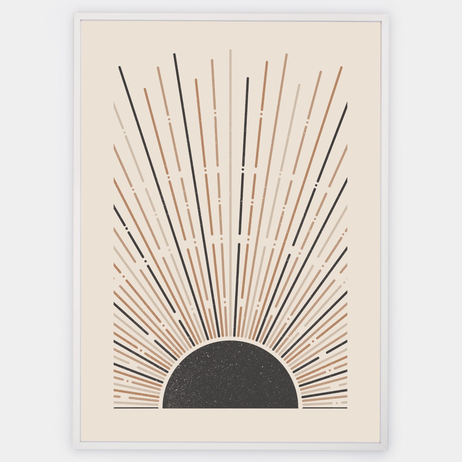Boho poster with geometric shapes in beige tones "Sunrise". The poster is sold without a frame, with the option to order a thin wooden frame with a thickness of 1.2 cm. There are three color options to choose from - white , black and oak design.