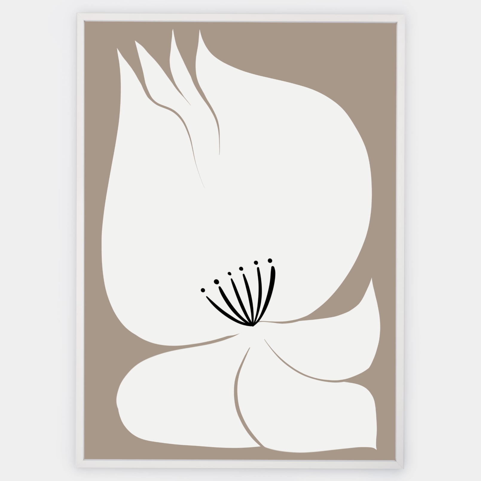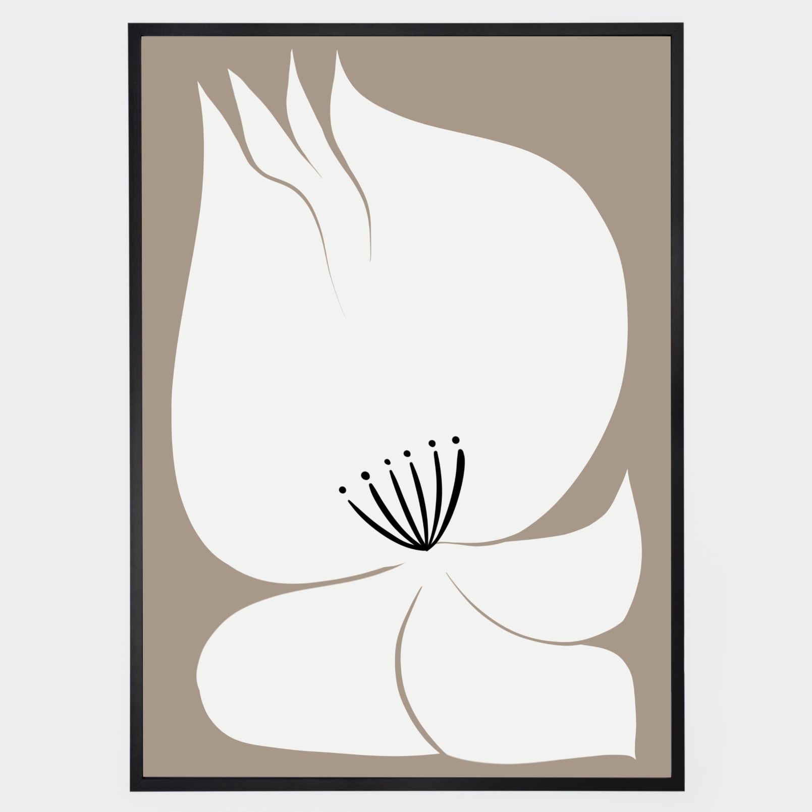 Boho poster with "Flower head" graphic set of 4 on a beige background. The poster is sold without a frame, with the option to order a thin wooden frame with a thickness of 1.2 cm. There are three color options to choose from - white , black and oak design.