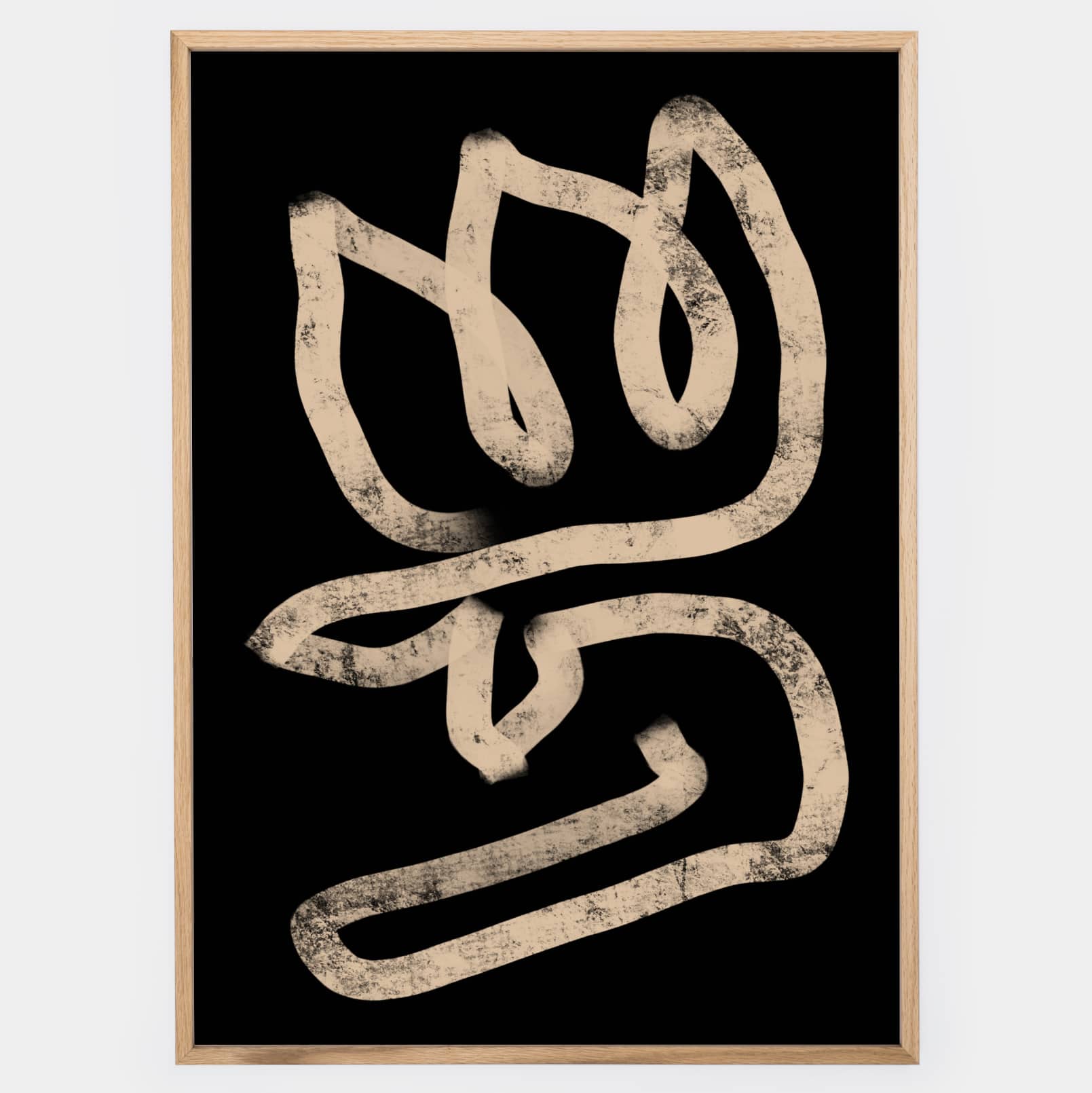 Boho poster with "Tulip" graphic on a black background. The poster is sold without a frame, with the option to order a thin wooden frame with a thickness of 1.2 cm. There are three color options to choose from - white , black and oak design.