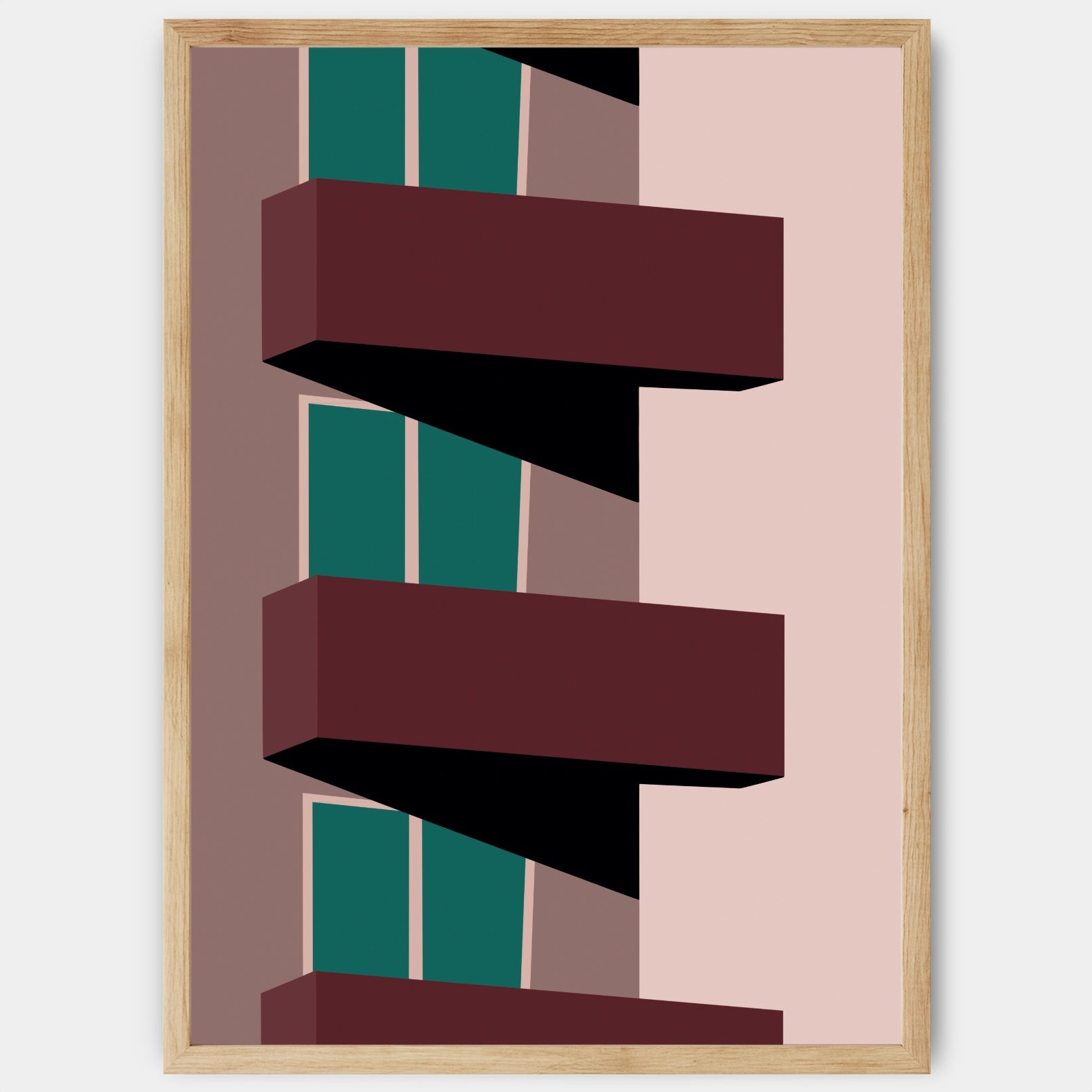 Poster with graphics inspired by the famous German art school Bauhaus. The poster is sold without a frame, with the option to order a thin wooden frame with a thickness of 1.2 cm. There are three color options to choose from - white , black and oak design.
