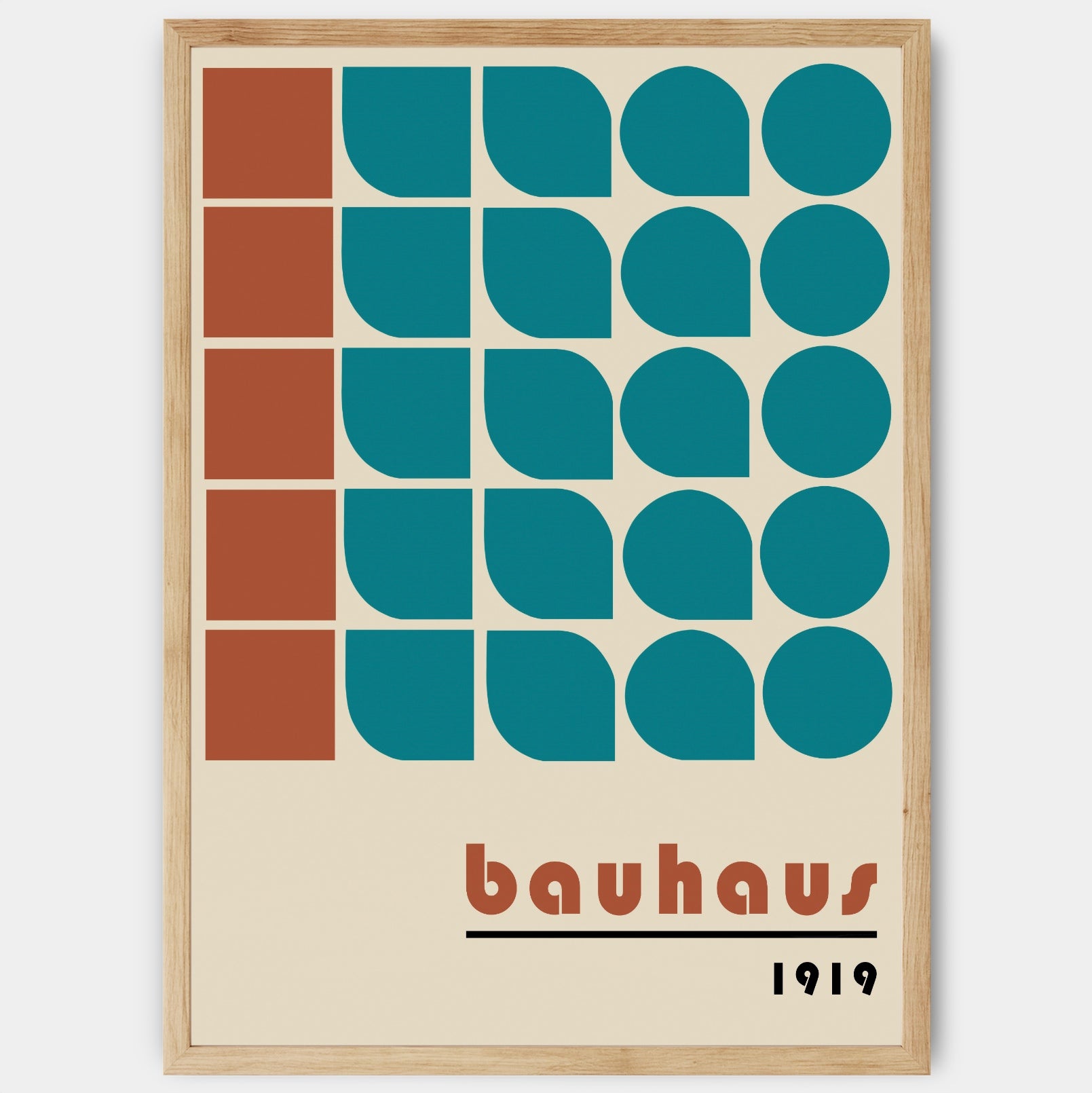 Poster with graphics inspired by the famous German art school Bauhaus. The poster is sold without a frame, with the option to order a thin wooden frame with a thickness of 1.2 cm. There are three color options to choose from - white , black and oak design.