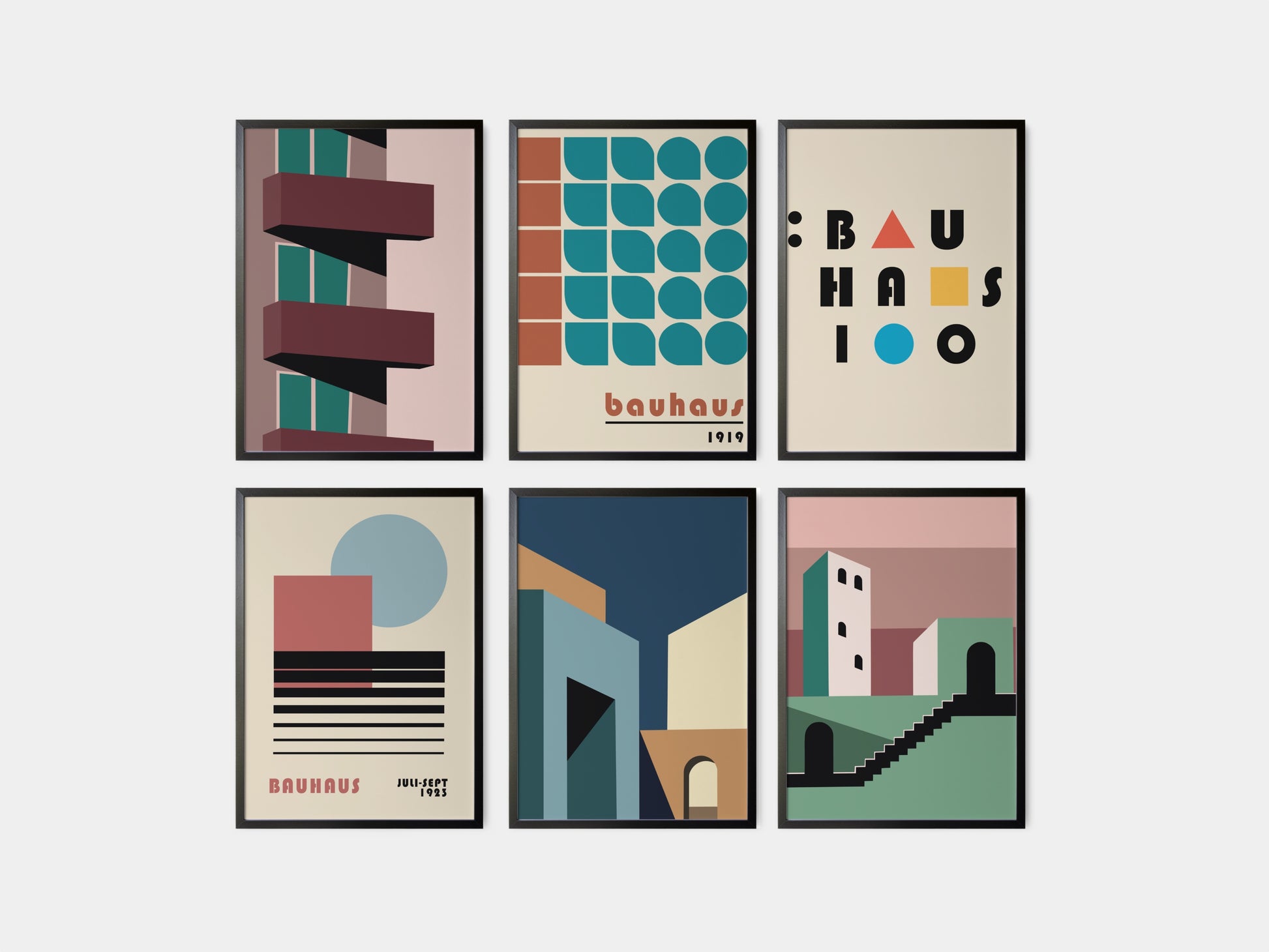 Poster with graphics inspired by the famous German art school Bauhaus. The poster is sold without a frame, with the option to order a thin wooden frame with a thickness of 1.2 cm. There are three color options to choose from - white , black and oak design.