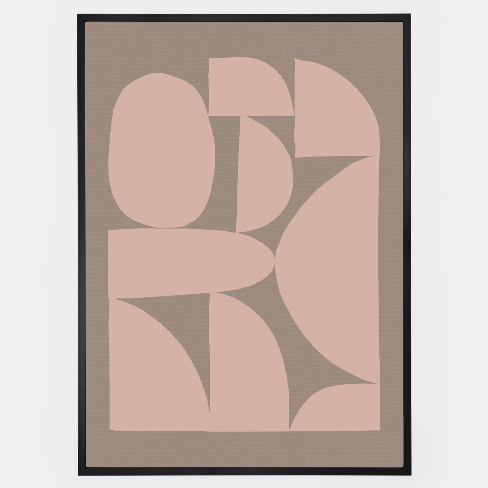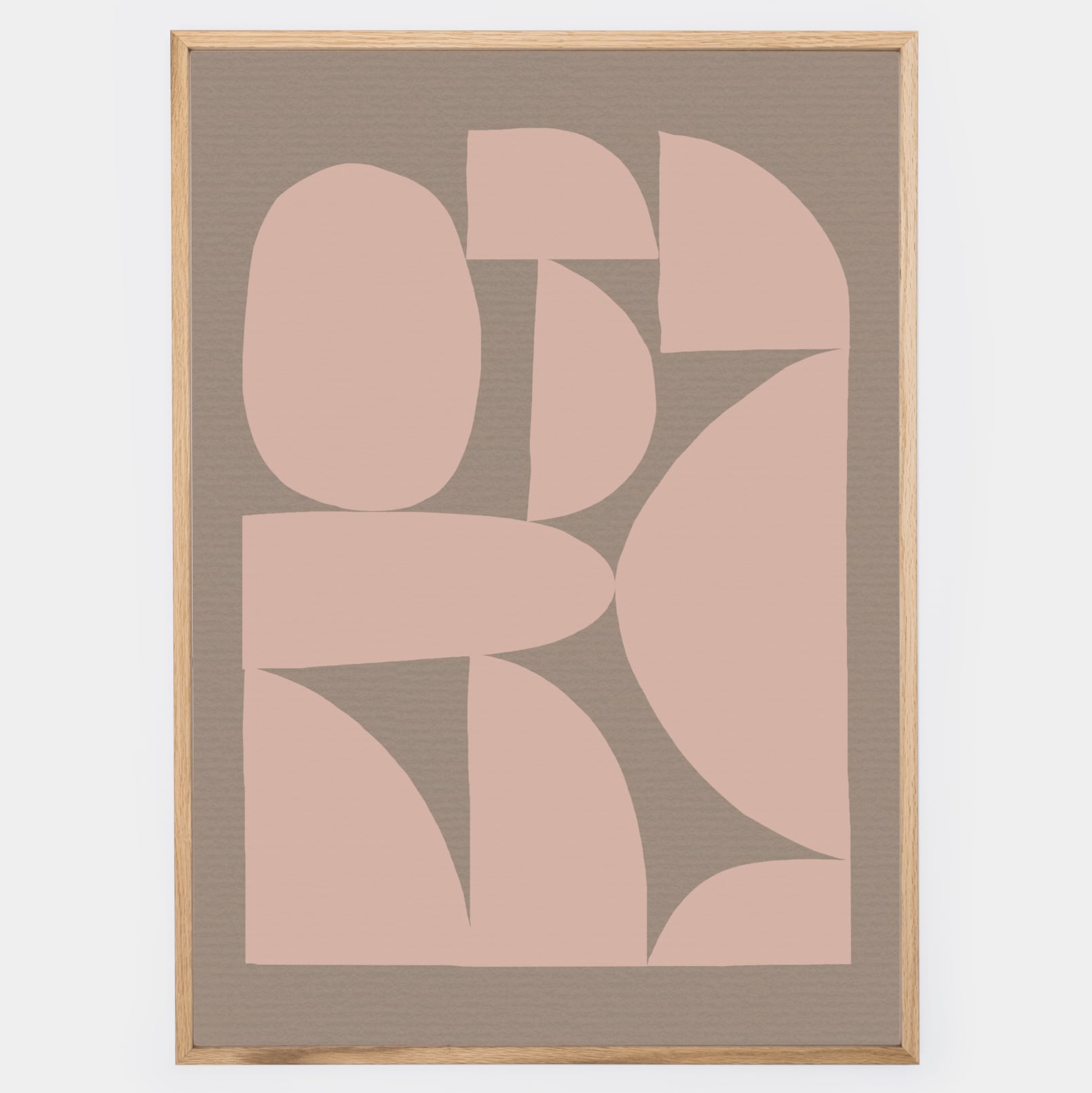 Boho poster with "Cardboard" graphic set 2 on khaki background. The poster is sold without a frame, with the option to order a thin wooden frame with a thickness of 1.2 cm. There are three color options to choose from - white , black and oak design.