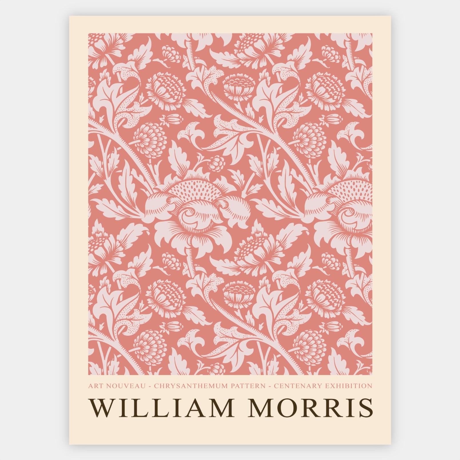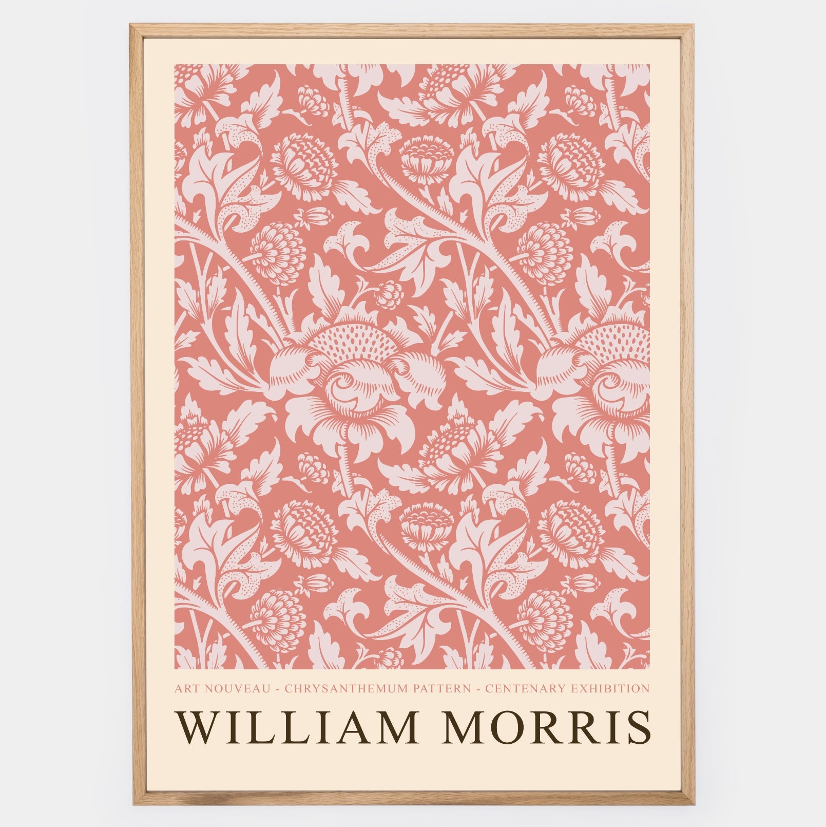 A poster inspired by William Morris's chrysanthemum pattern. The poster is sold without a frame, with the option to order a thin wooden frame with a thickness of 1.2 cm. There are three color options to choose from - white , black and oak design.
