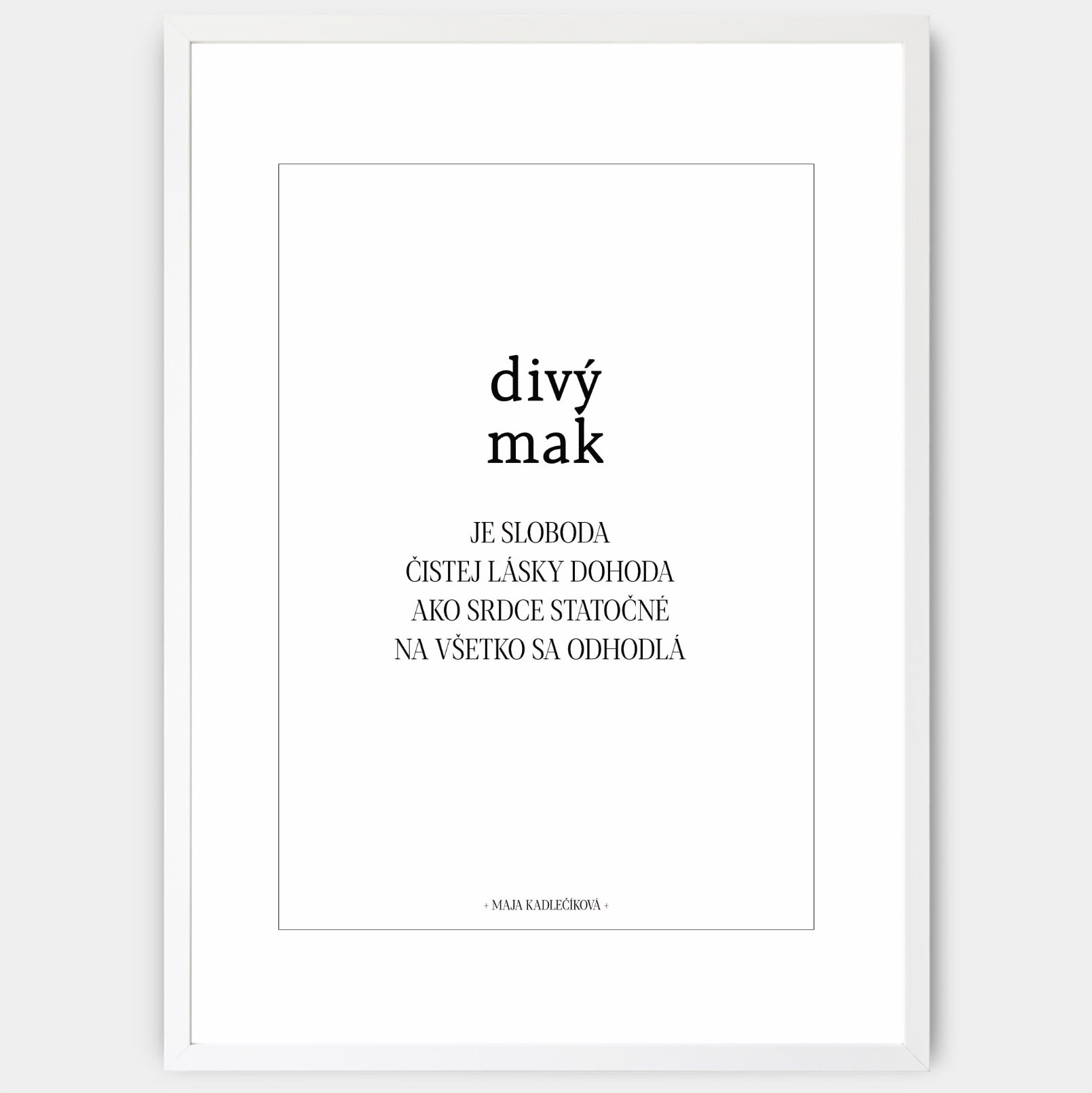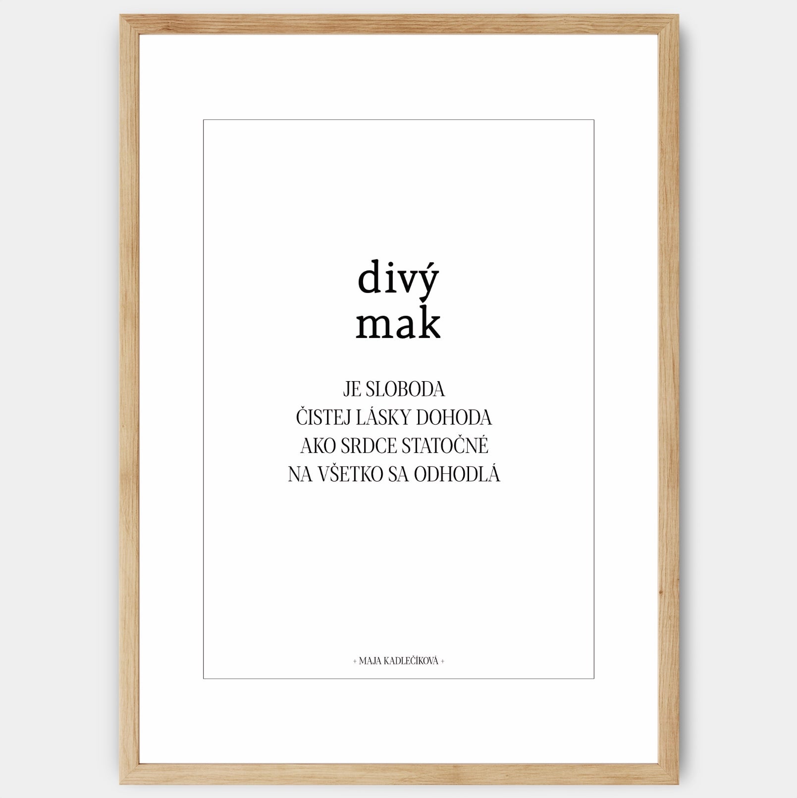 The poster with the poem "Wild Poppy" from the Night and Day collection is complemented by a poster of the same name with a visual of wild poppies . It is designed to be supplemented with a standard mount. The poster is sold without a frame, with the option to order a thin wooden frame with a thickness of 1.2 cm. There are three color options to choose from - white , black and oak design.