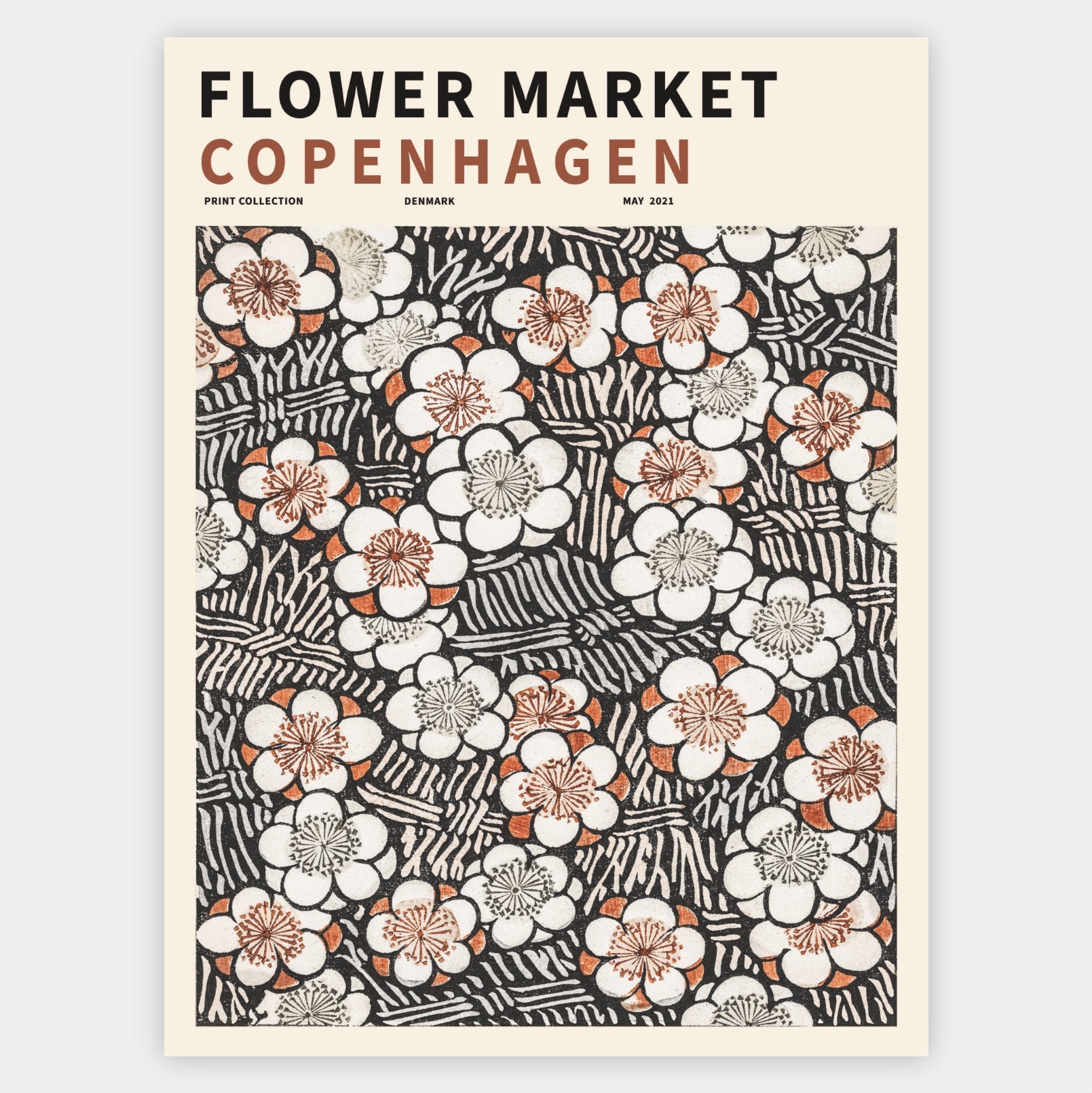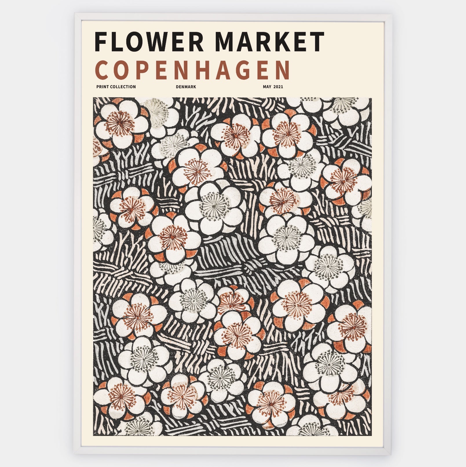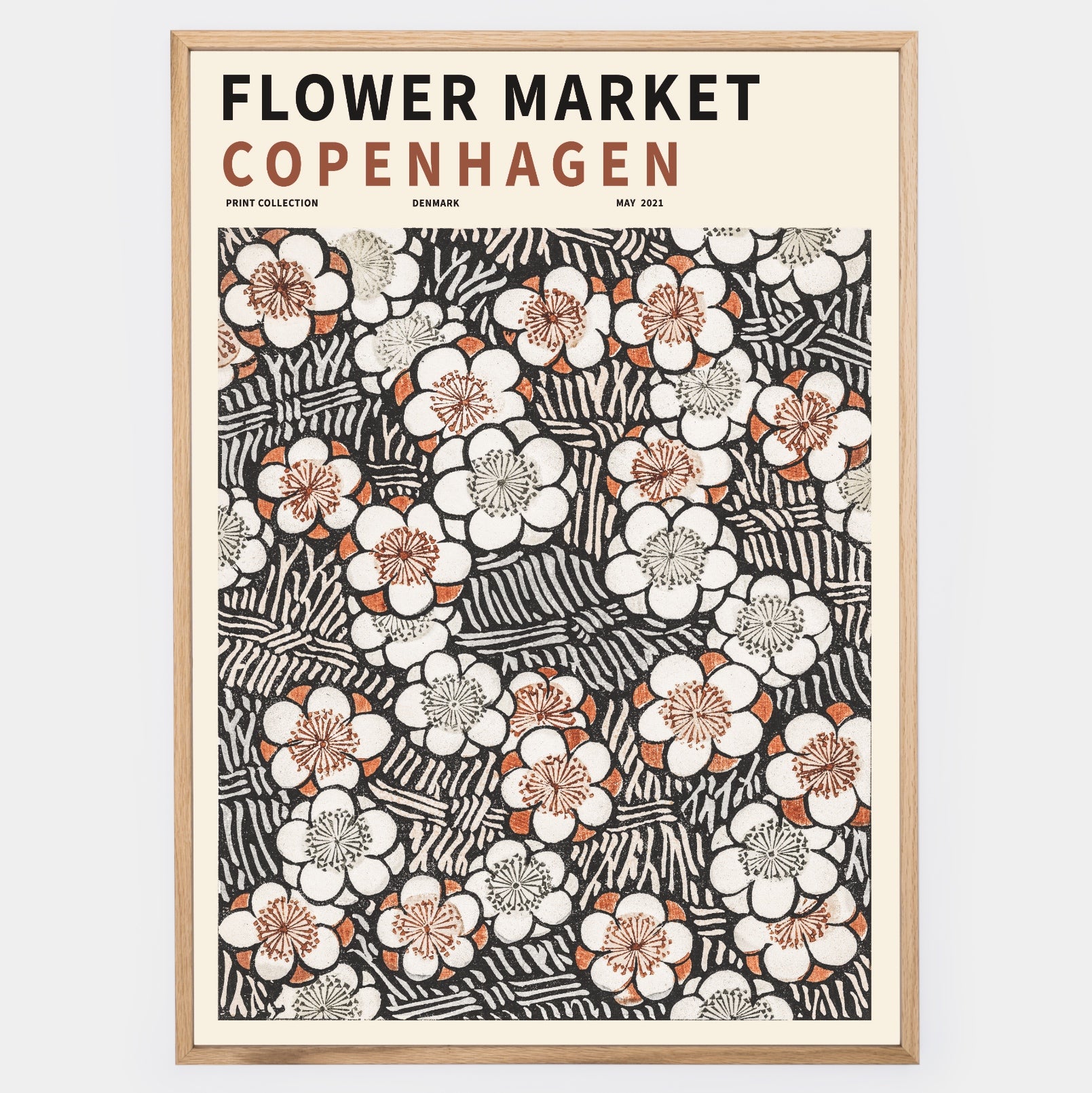 Flower Market poster with floral motif "Copenhagen". The poster is sold without a frame, with the option to order a thin wooden frame with a thickness of 1.2 cm. There are three color options to choose from - white , black and oak design.