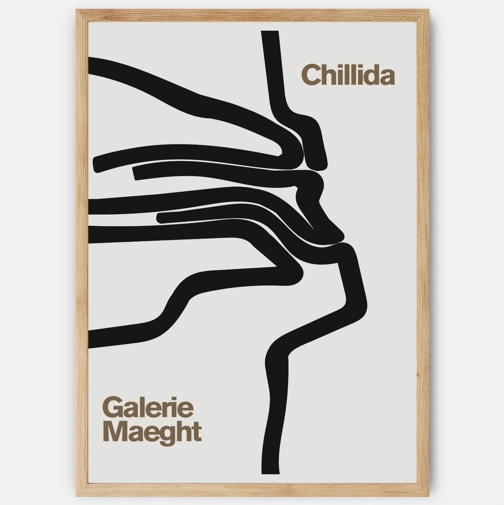 Remake of an exhibition poster Eduardo Chillida Maeght Gallery. The poster is sold without a frame, with the option to order a thin wooden frame with a thickness of 1.2 cm. There are three color options to choose from - white , black and oak design.