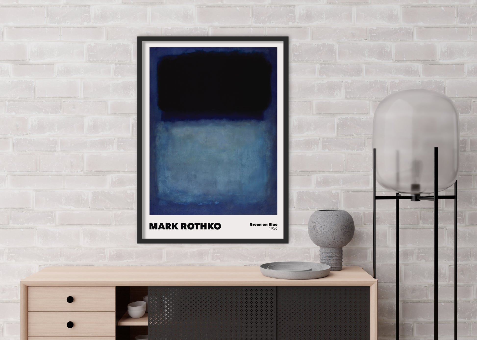 Poster inspired by the painting by Mark Rothko - Green on Blue. The poster is sold without a frame, with the option to order a thin wooden frame with a thickness of 1.2 cm. There are three color options to choose from - white , black and oak design.