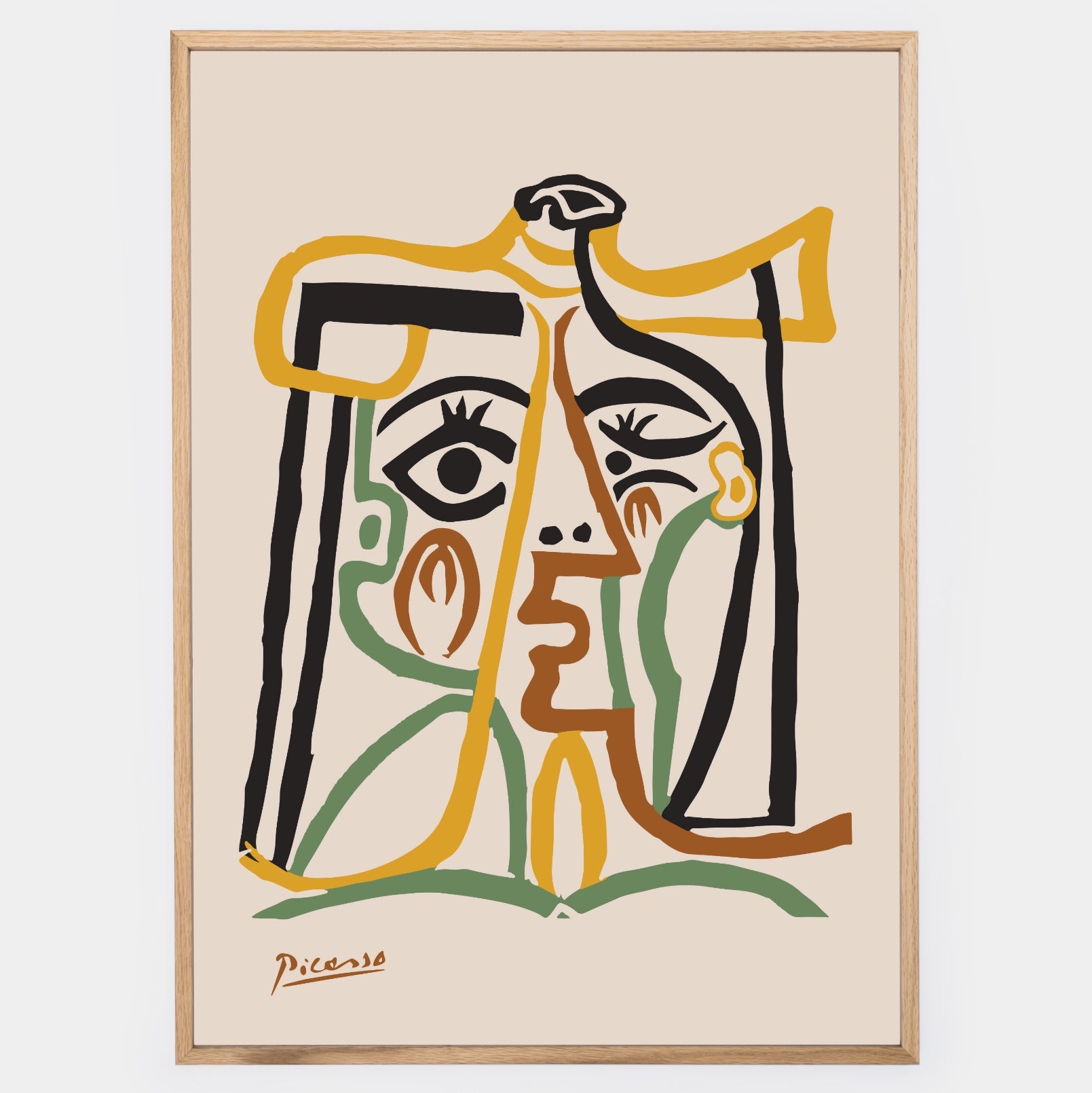 A remake based on the work by Pablo Picasso titled "Head of a Woman". The poster is sold without a frame, with the option to order a thin wooden frame with a thickness of 1.2 cm. There are three color options to choose from - white , black and oak design.