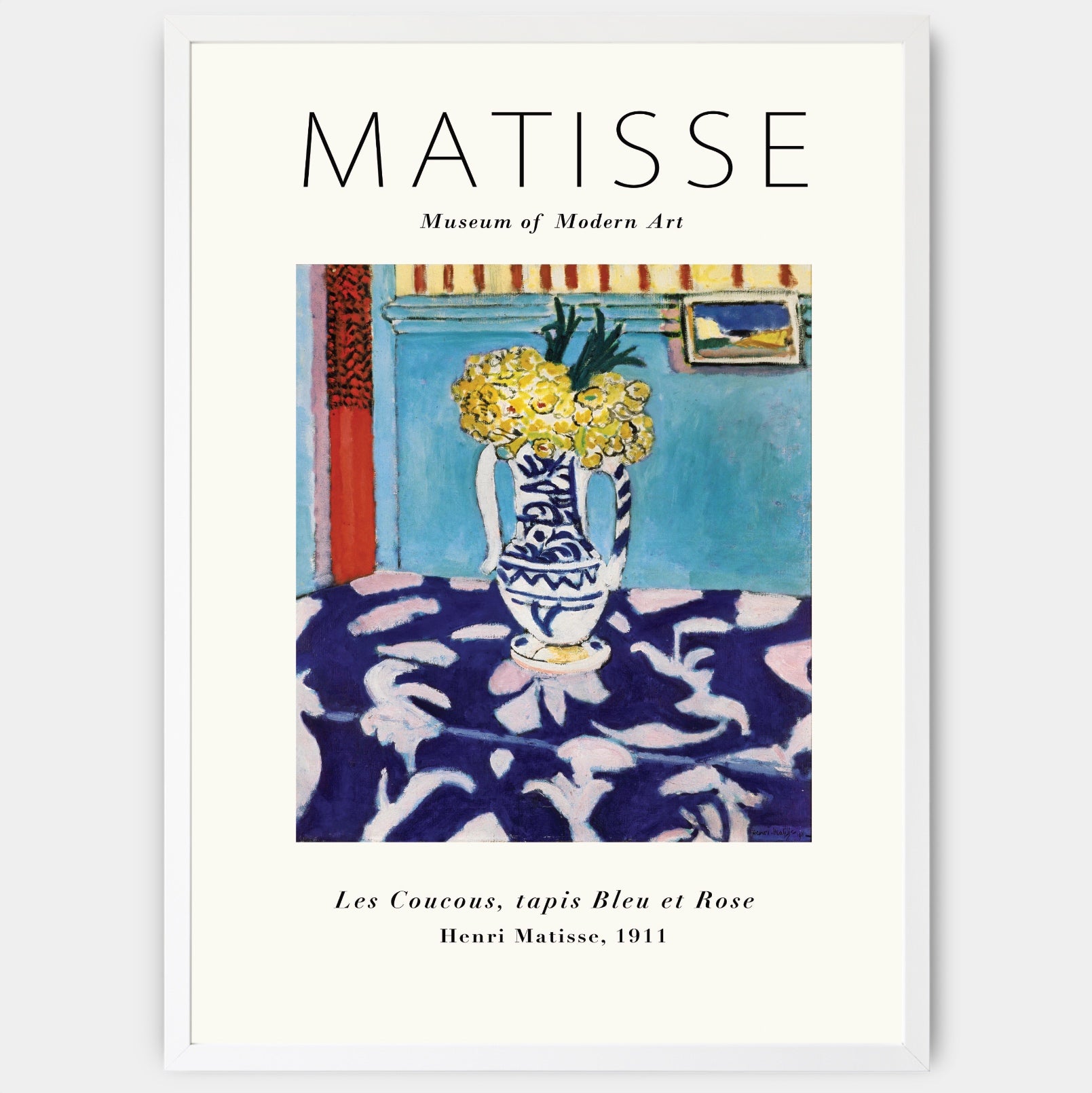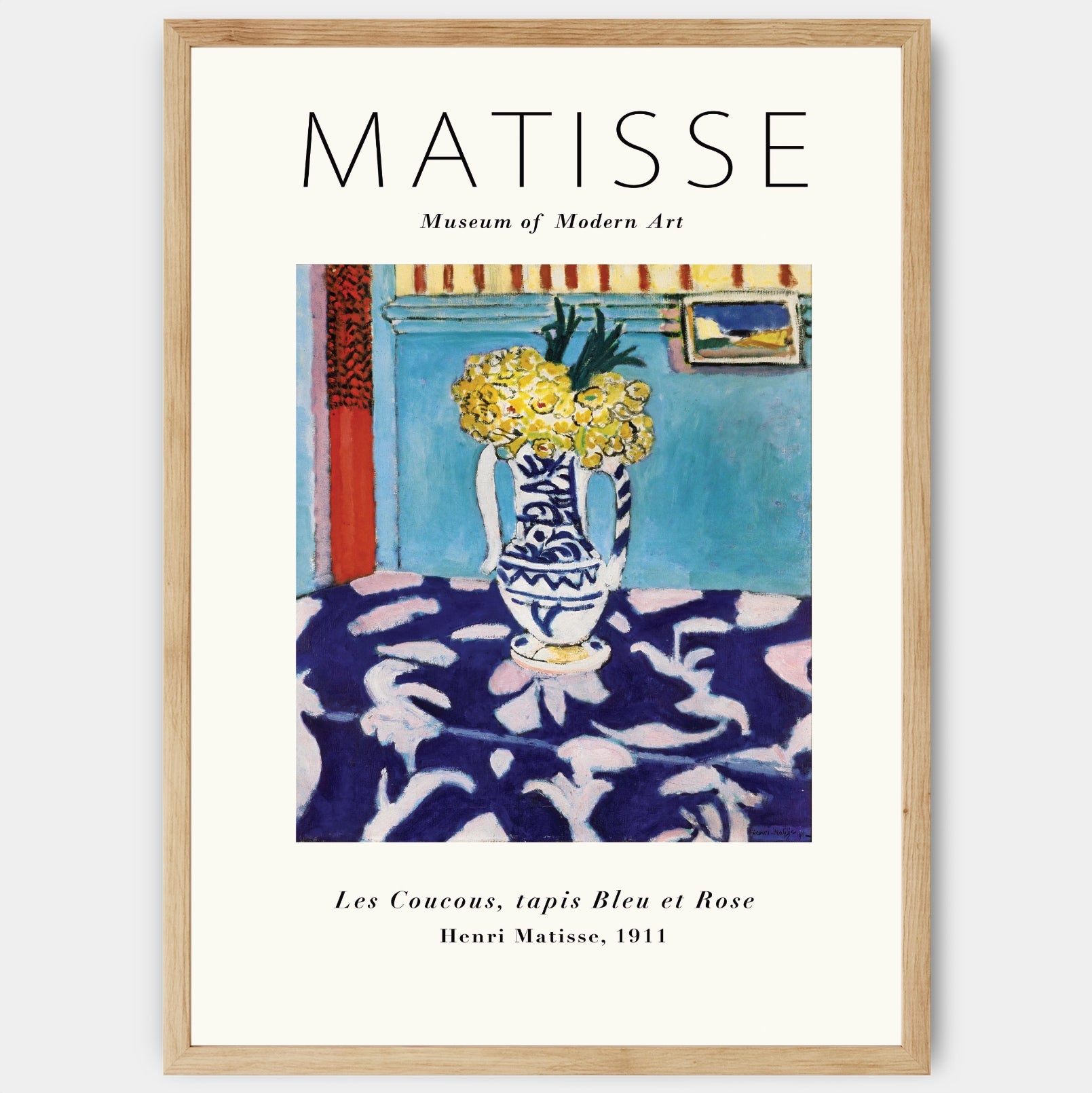 Poster with a motif from Henri Matisse's work Les Coucous from 1911. The poster is sold without a frame, with the option to order a thin wooden frame with a thickness of 1.2 cm. There are three color options to choose from - white , black and oak design.