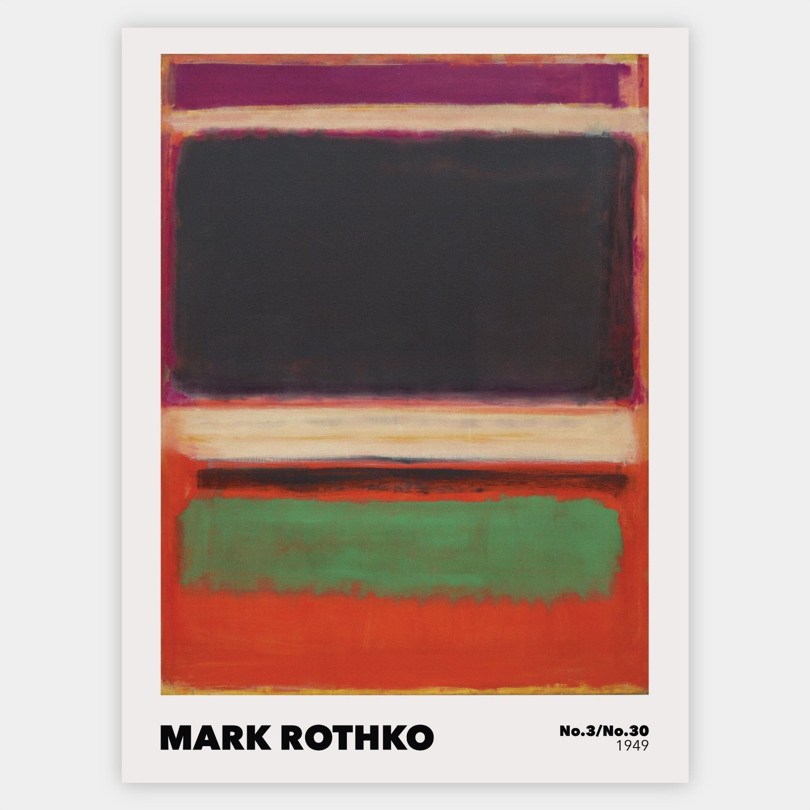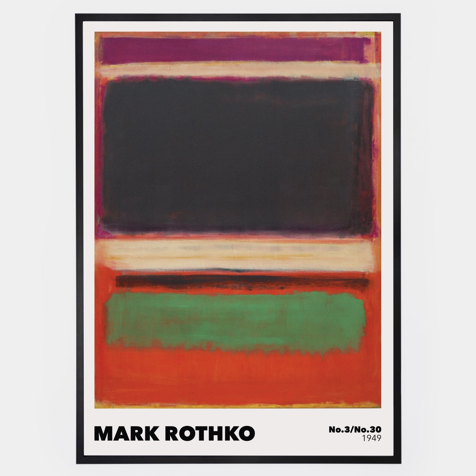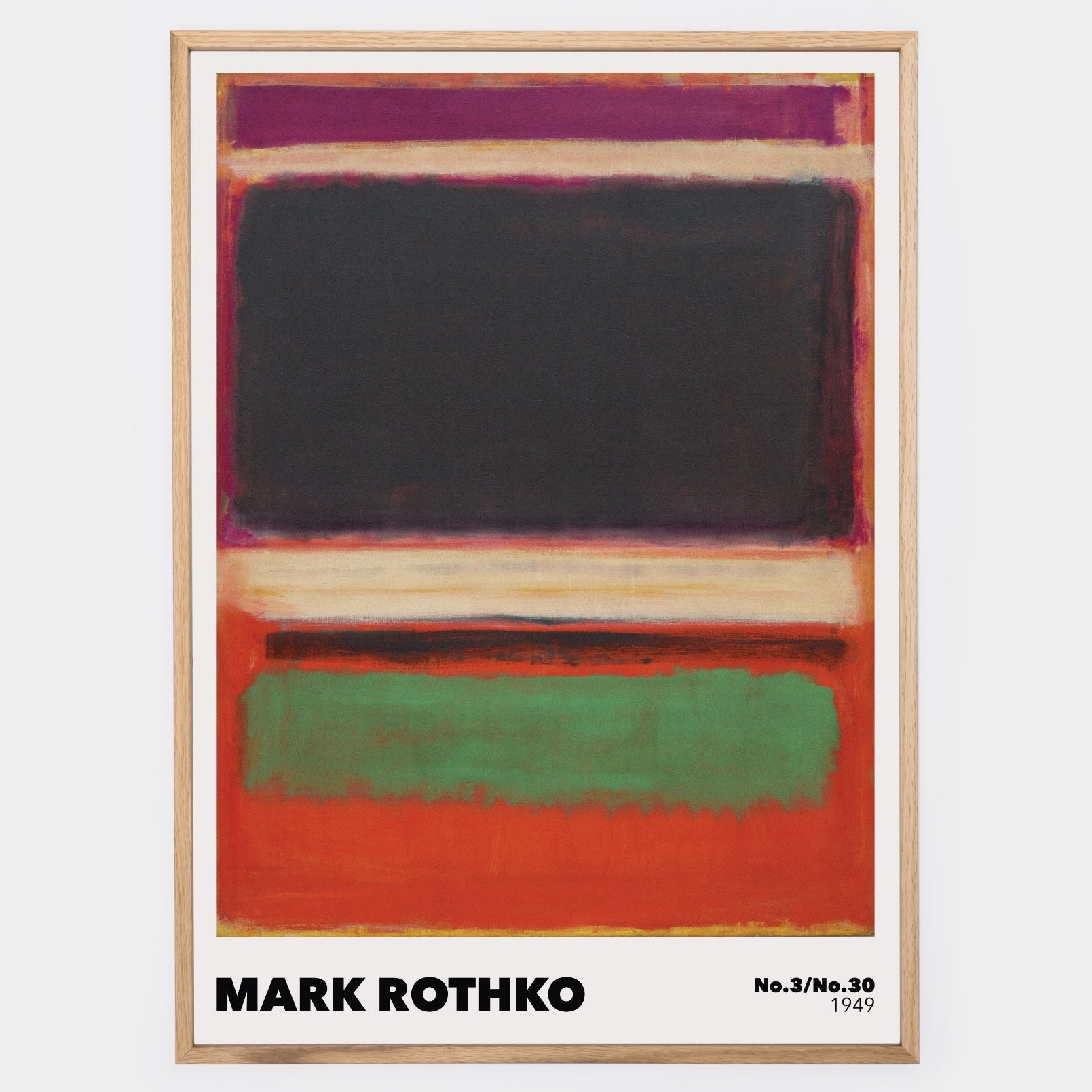 Poster inspired by a painting by Mark Rothko - No.3/No.13. The poster is sold without a frame, with the option to order a thin wooden frame with a thickness of 1.2 cm. There are three color options to choose from - white , black and oak design.
