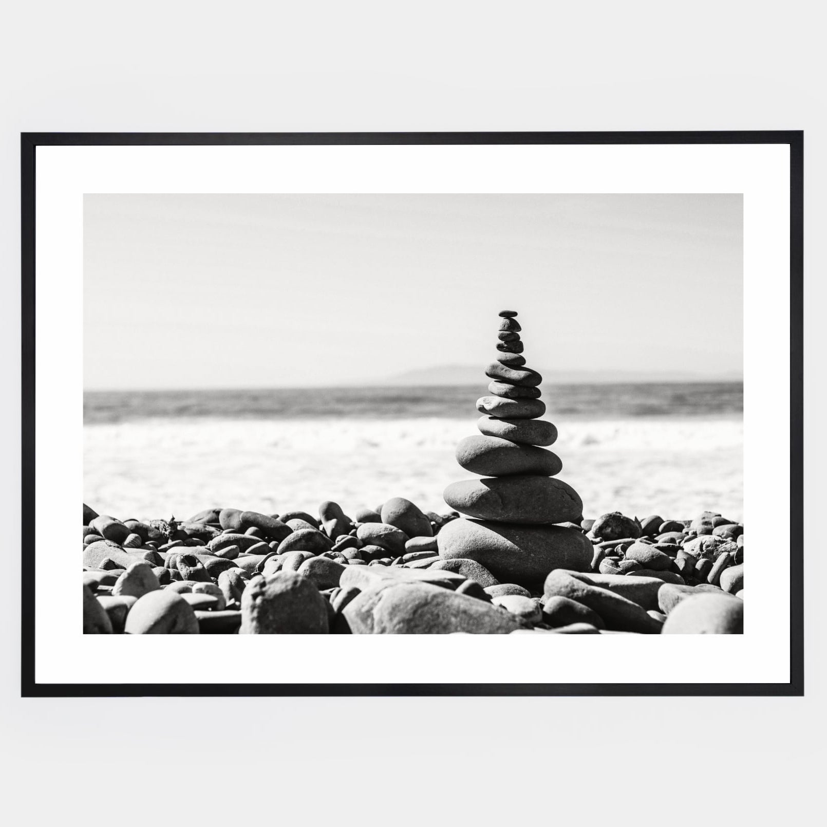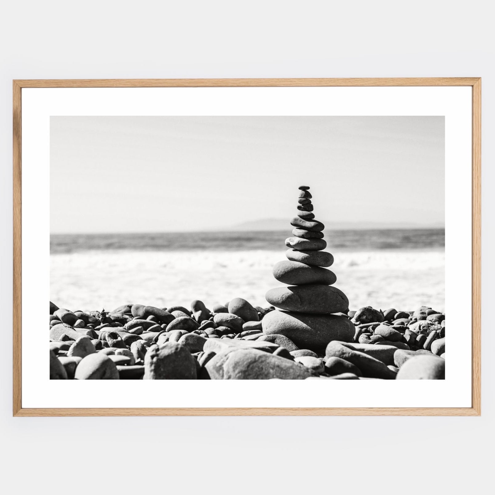 A poster with a black and white photograph of a stone tower on the beach. An elegant white border is included in the print. The poster is sold without a frame, with the option to order a thin wooden frame with a thickness of 1.2 cm. There are three color options to choose from - white , black and oak design.