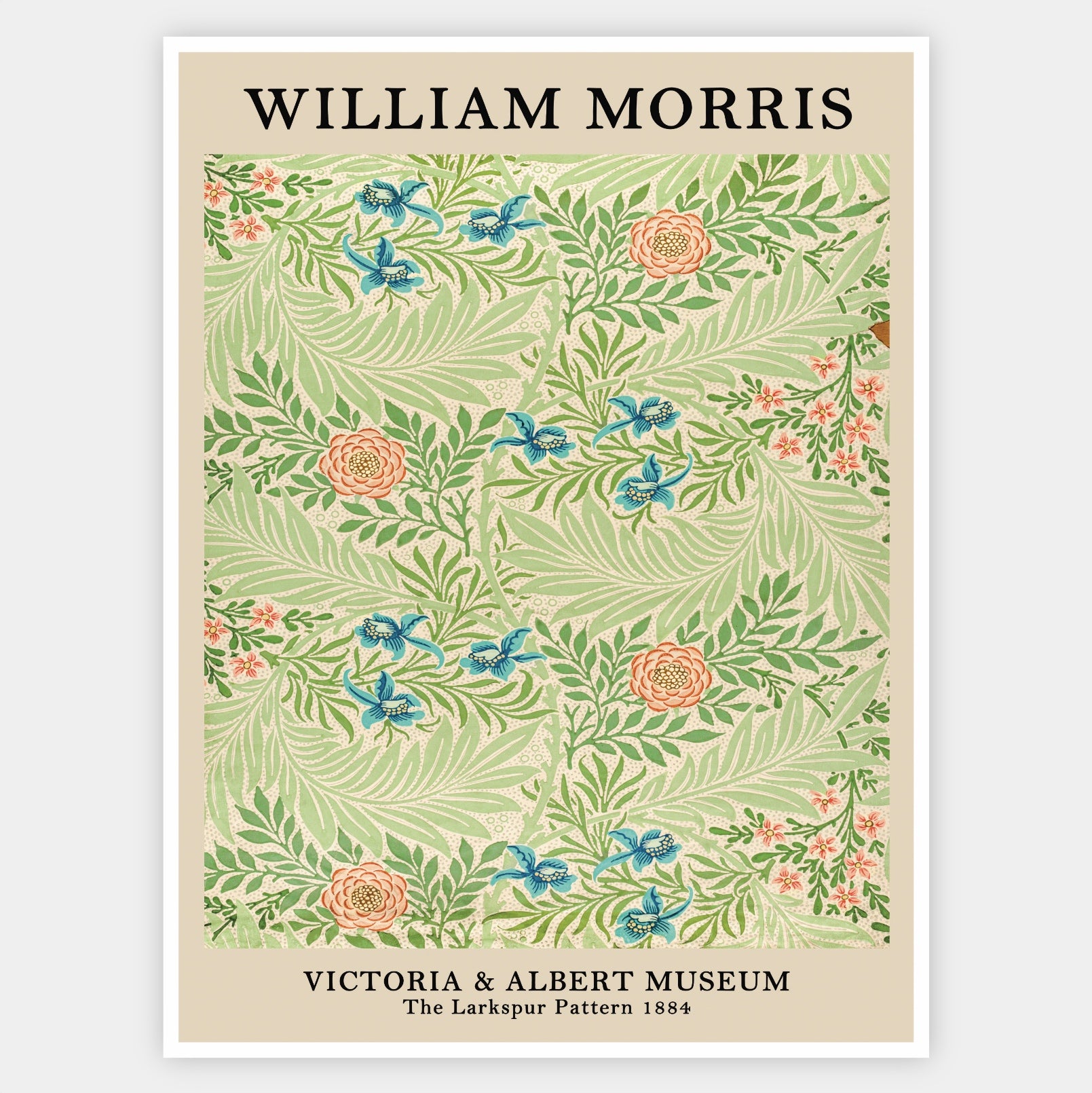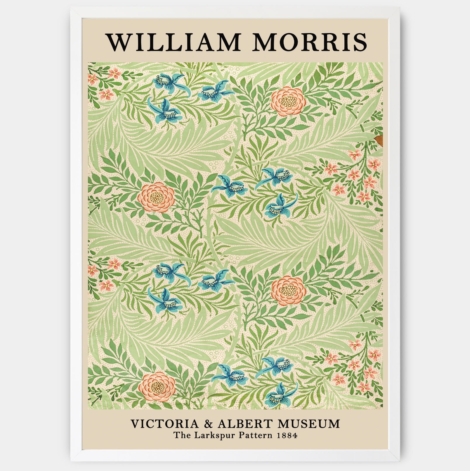 Poster inspired by a William Morris pattern. The poster is sold without a frame, with the option to order a thin wooden frame with a thickness of 1.2 cm. There are three color options to choose from - white , black and oak design.