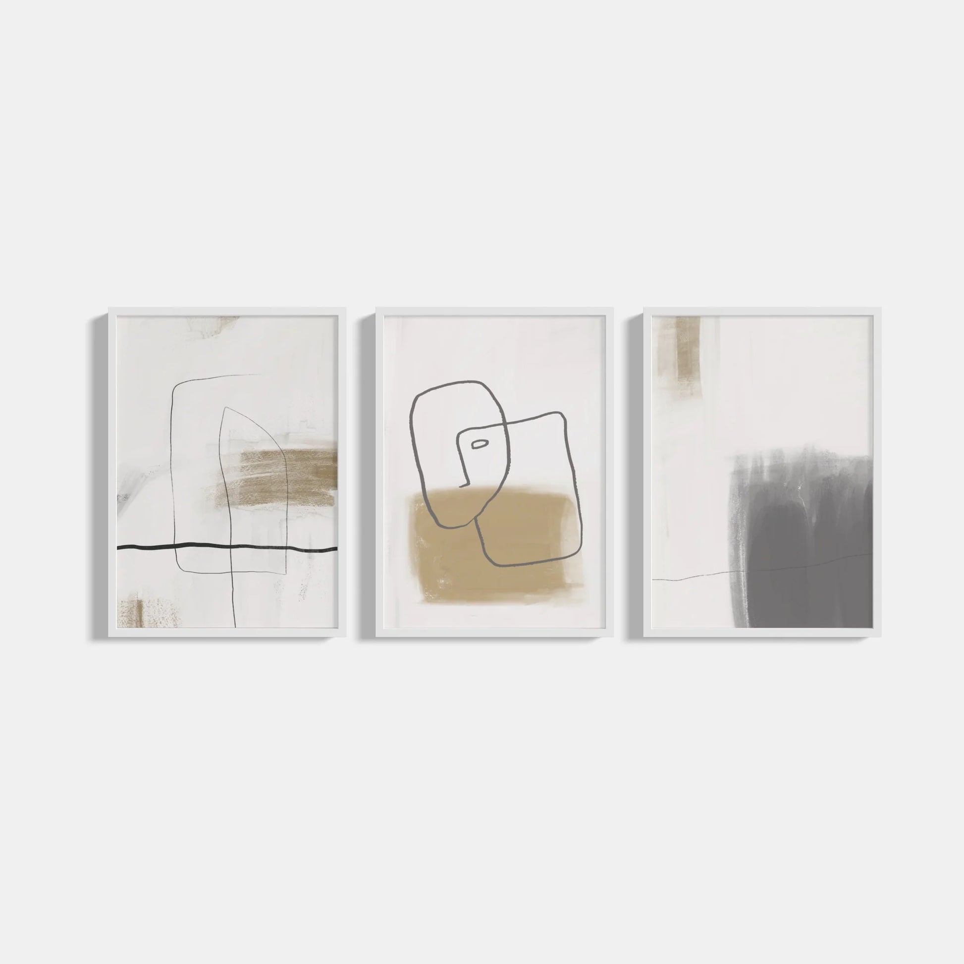 Set of three posters with an abstract motif in Scandinavian design. Contains 3 posters measuring 50x70cm, without frames. The posters can be purchased with white, black or oak frames .