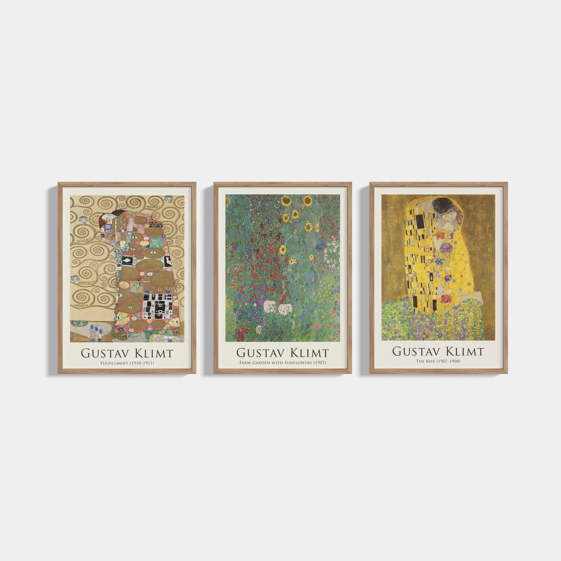 Set of three Gustav Klimt posters with inscriptions. Contains 3 posters measuring 50x70cm, without frames. The posters can be purchased with white, black or oak frames .