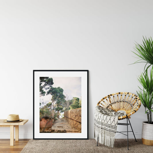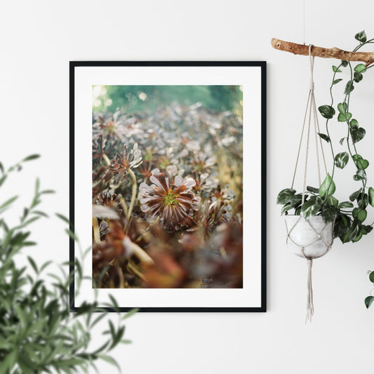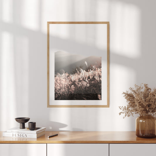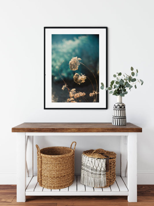 Boho plagát s fotografiou lúčnych kvetov pri západe slnka