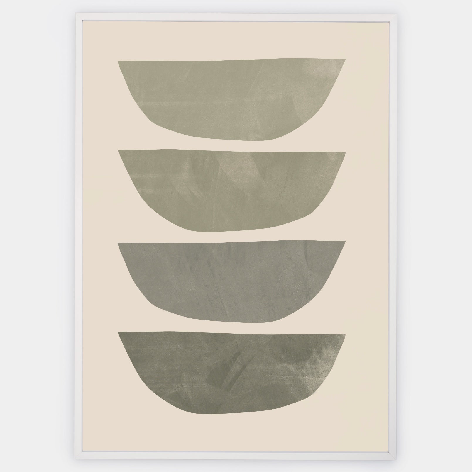 Boho plagát s grafikou štyroch misiek na béžovom podklade. Poster sa predáva bez rámu s možnosťou doobjednať tenký drevený rám o hrúbke 1,2 cm. Na výber sú tri farebné prevedenia - biely, čierny a dubový dizajn.