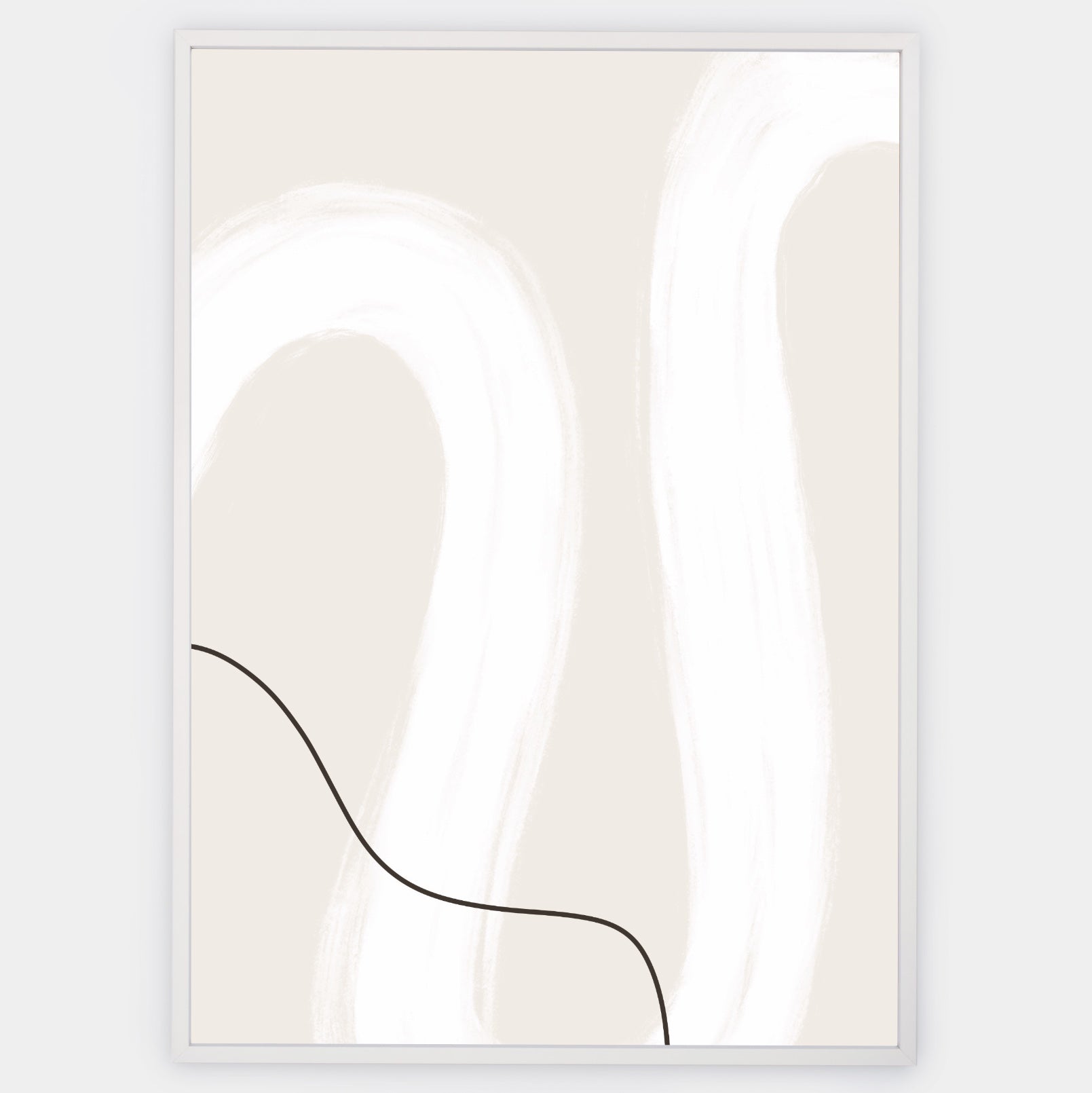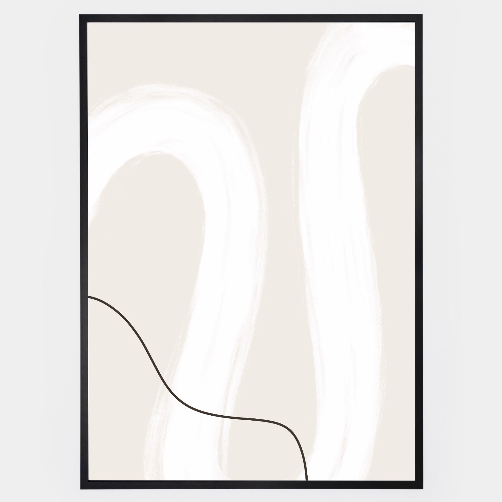 Boho plagát "ťahy štetcom" na béžovom podklade No. 1. Poster sa predáva bez rámu s možnosťou doobjednať tenký drevený rám o hrúbke 1,2 cm. Na výber sú tri farebné prevedenia - bielyčierny a dubový dizajn.