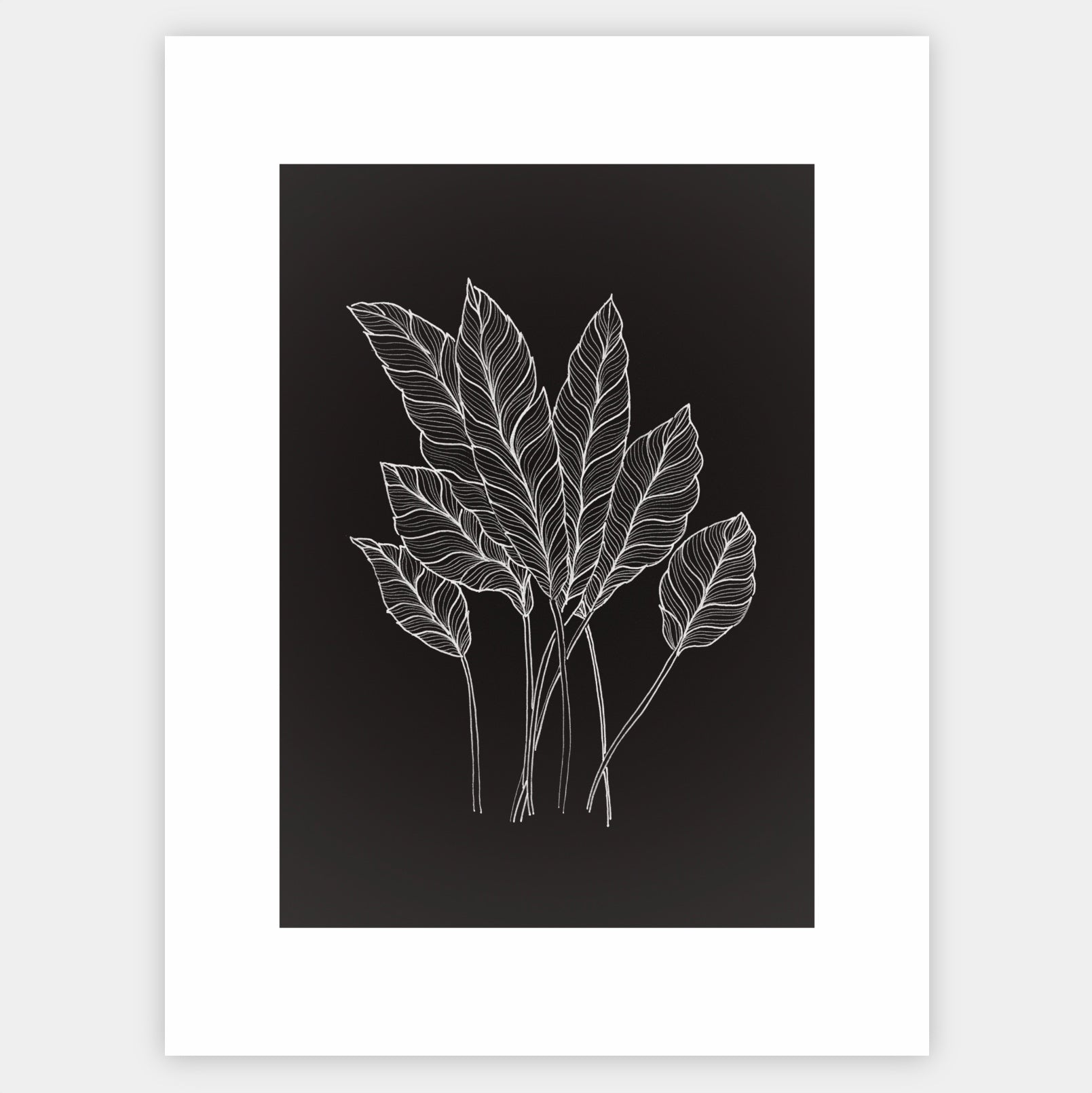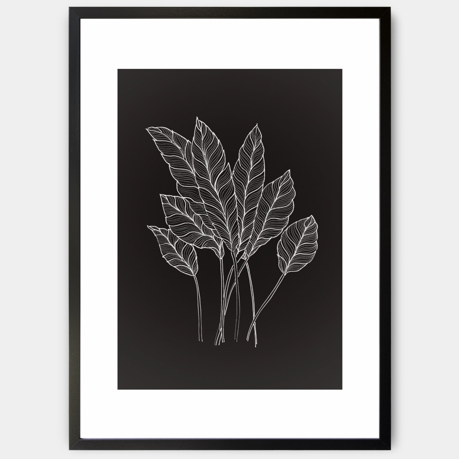 Plagát s florálnym motívom na čiernom podklade z kolekcie Noc a Deň. Elegantný biely okraj je súčasťou printu, je navrhnutý tak, aby bolo možné print doplniť o štandardnú paspartu. Poster sa predáva bez rámu s možnosťou doobjednať tenký drevený rám o hrúbke 1,2 cm. Na výber sú tri farebné prevedenia - biely, čiernydubový dizajn.