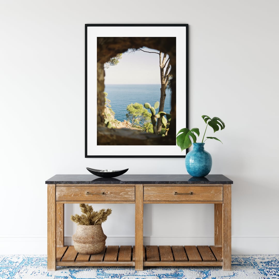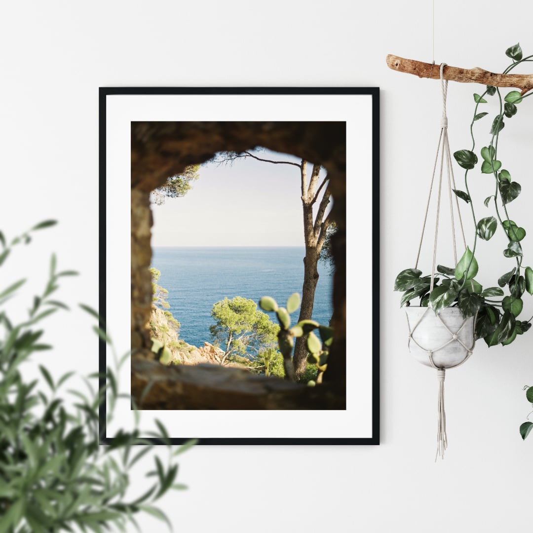 Nechajte sa uniesť pohľadom na more s týmto nádherným plagátom z kolekcie "Look and Dream" od Zuzany Gavulovej. Fotografia z botanickej záhrady Jardins de Cap Roig vás prenesie do sveta plného pokoja a prírodnej krásy.