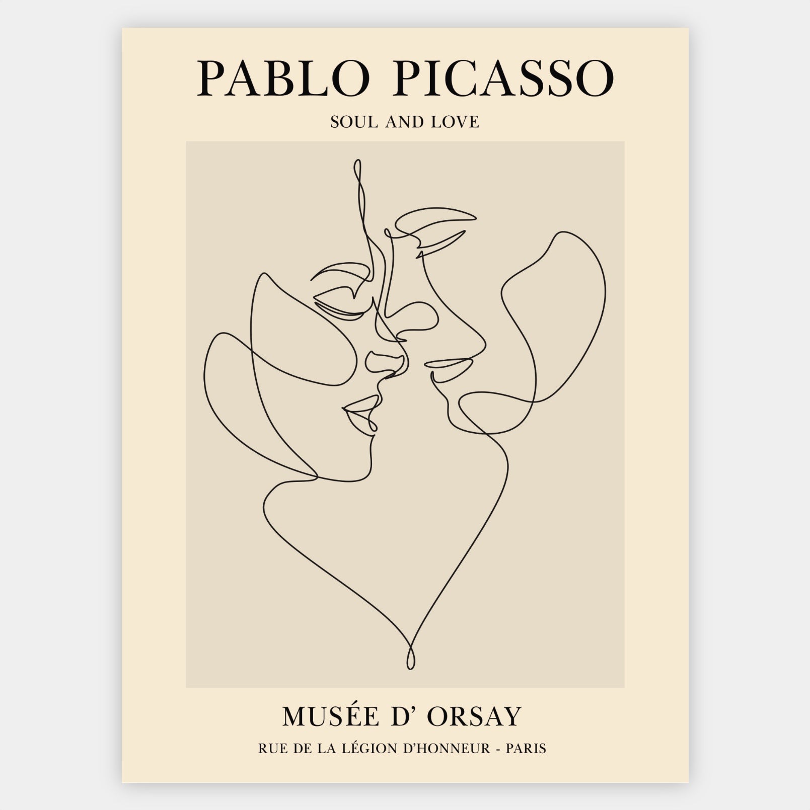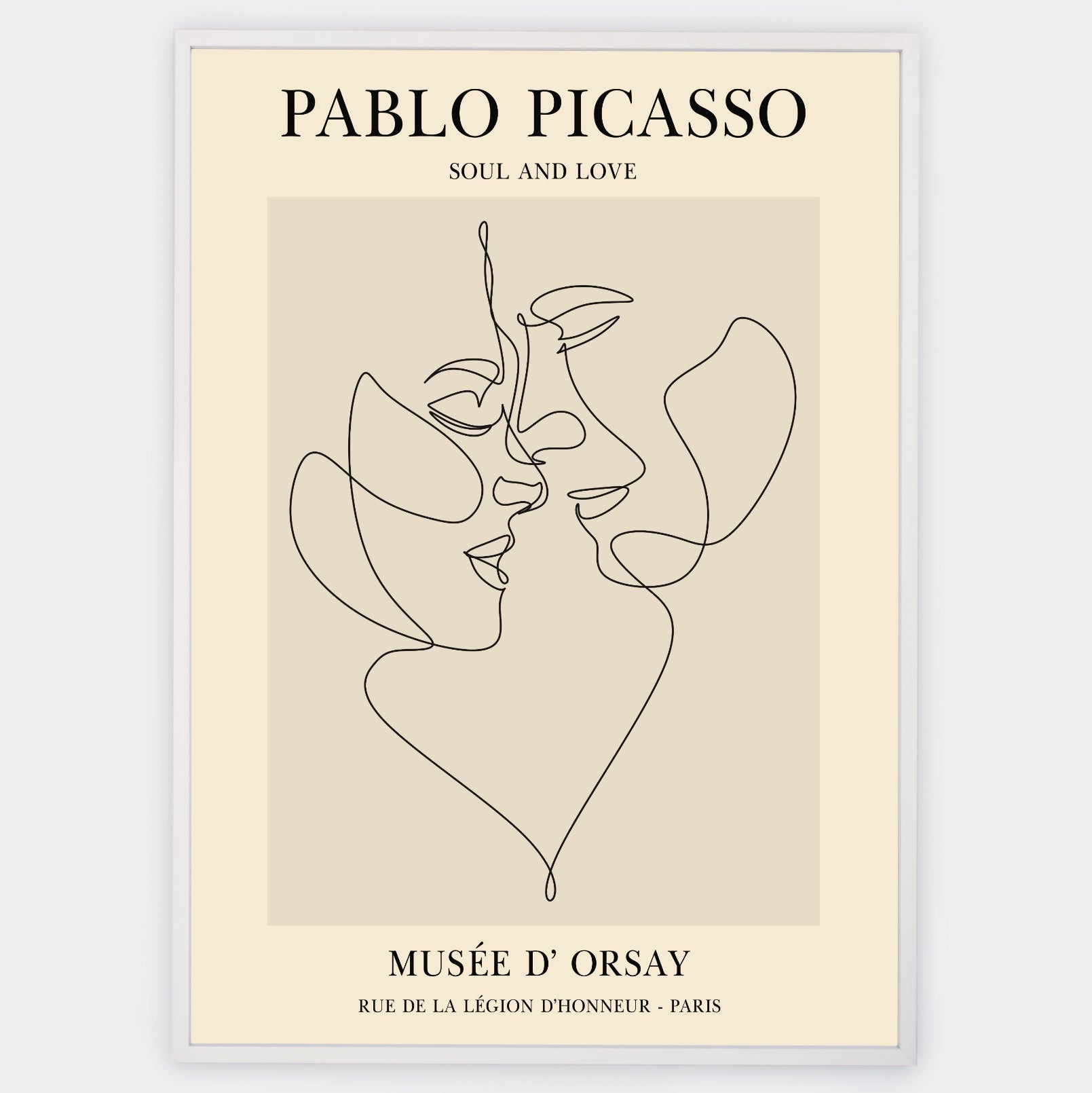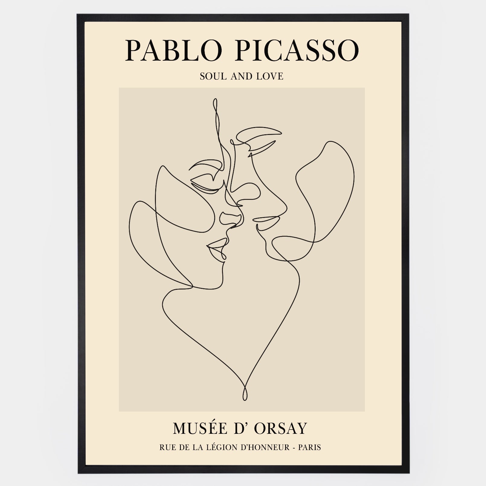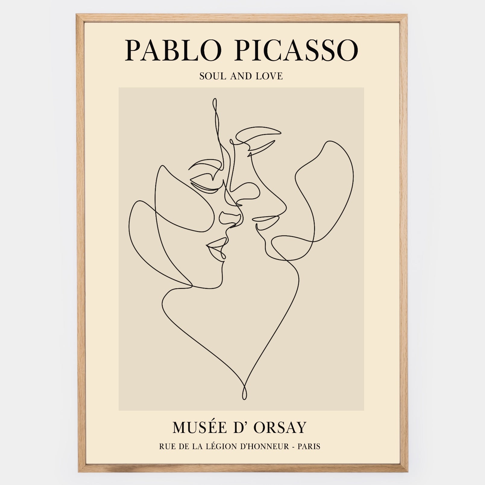 Plagát minimalistickej kresby dvoch tvári na motív od Pabla Picassa. Poster sa predáva bez rámu s možnosťou doobjednať tenký drevený rám o hrúbke 1,2 cm. Na výber sú tri farebné prevedenia - biely, čierny a dubový dizajn.