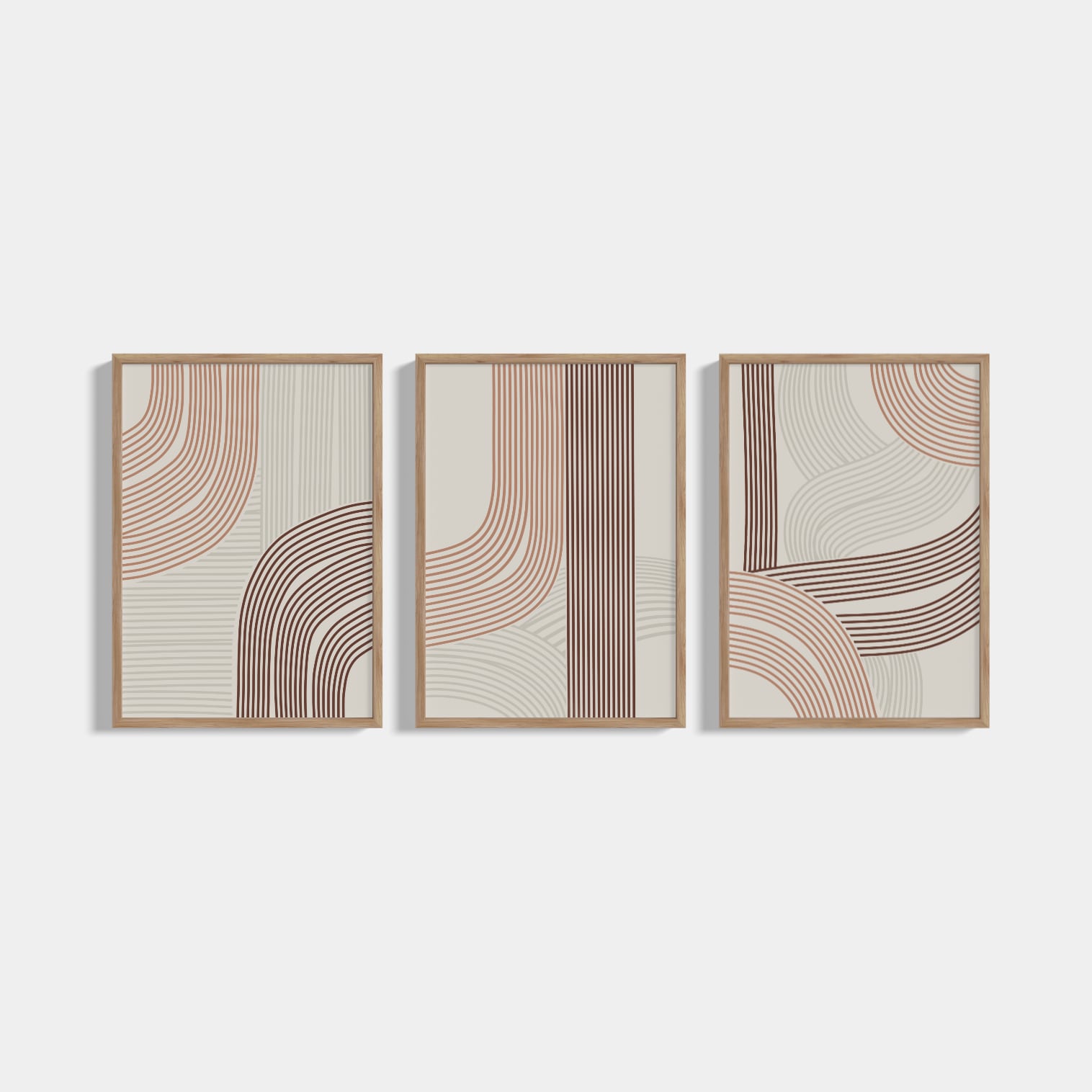 Zostava troch plagátov zo série Aesthetic v prírodných odtieňoch. Obsahuje 3 plagáty o rozmere 50x70cm, bez rámov. K plagátom možno dokúpiť biele, čierne alebo dubové rámy.