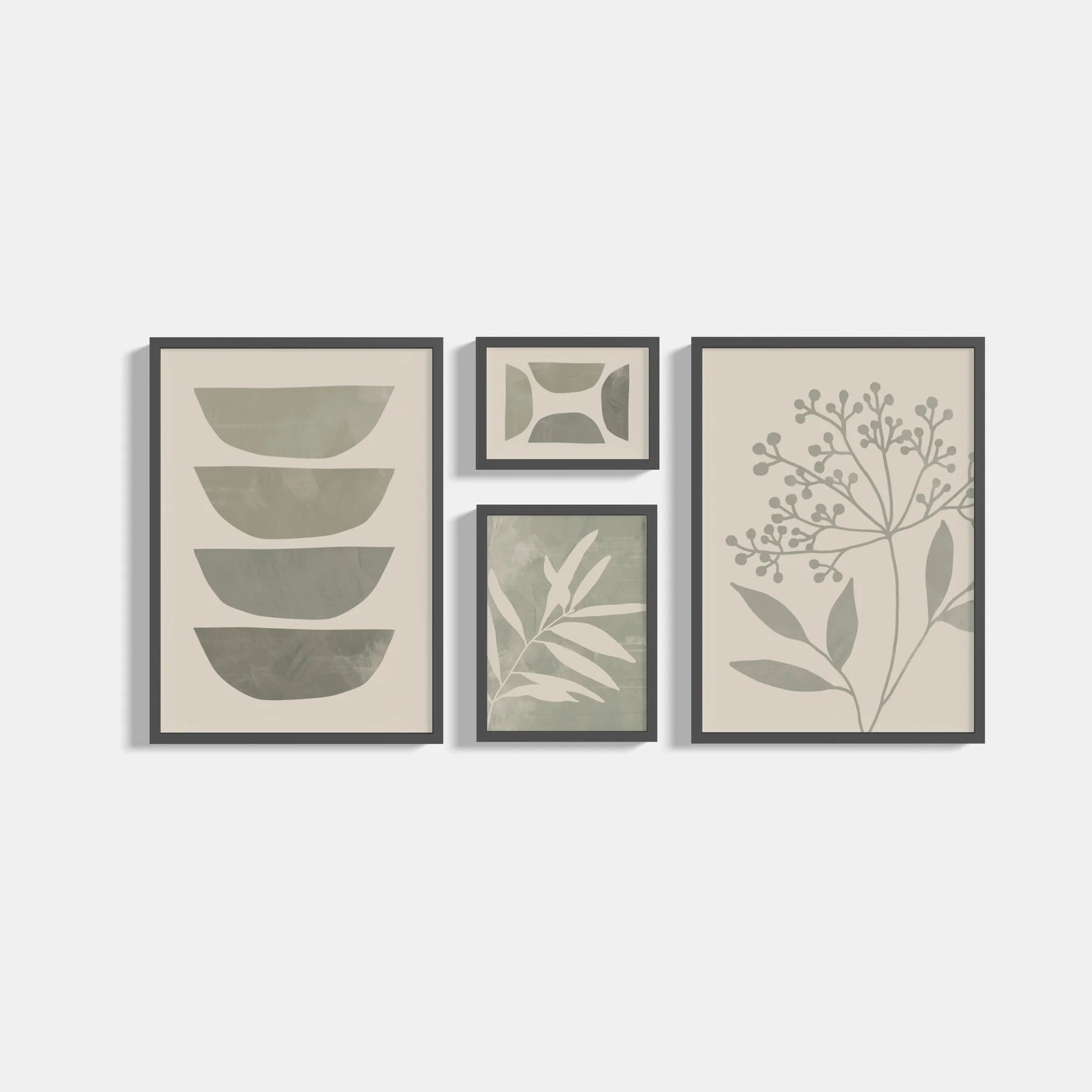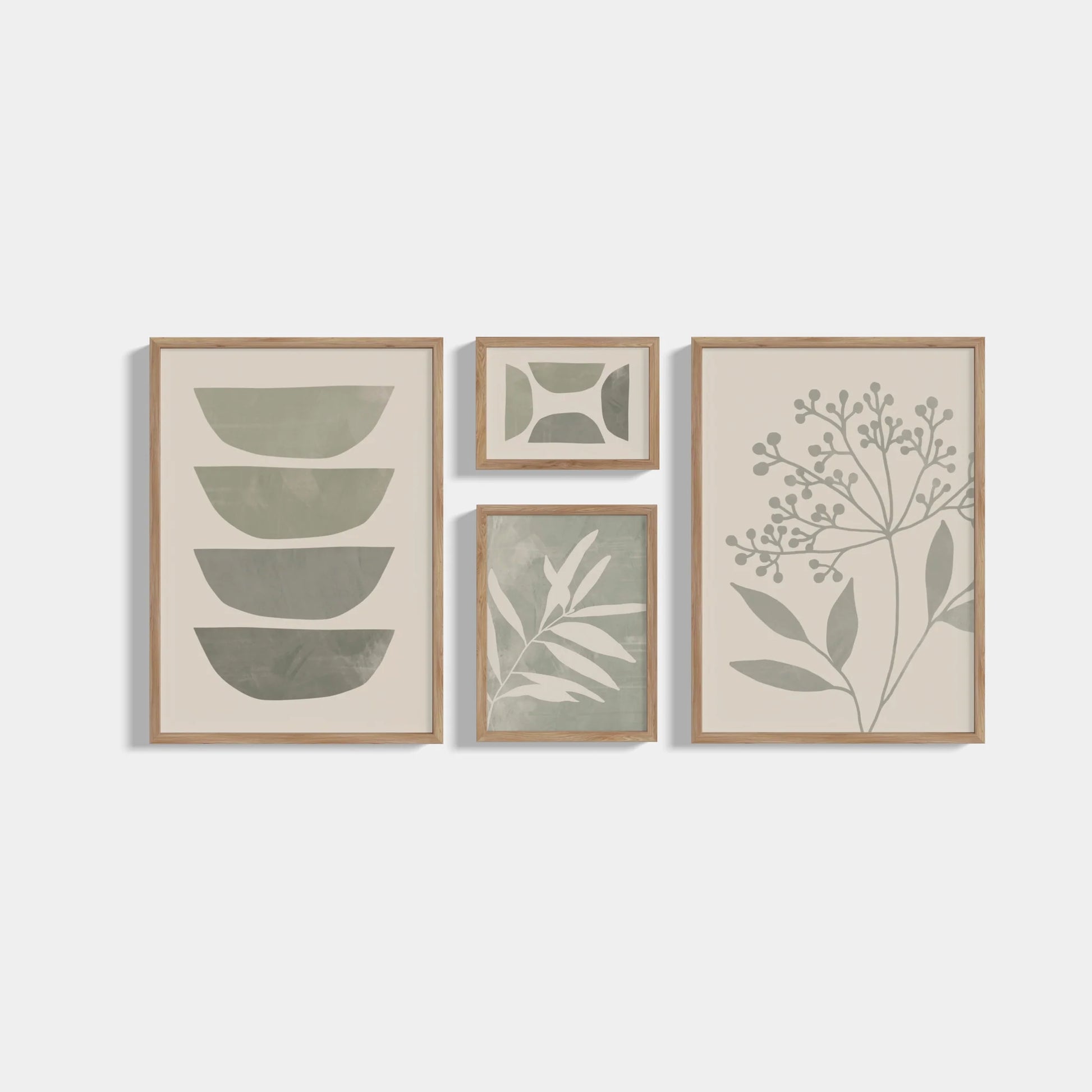 Zostava štyroch boho plagátov v zelených tónoch. Obsahuje 2 plagáty rozmeru 50x70cm a 1 plagát 30x40cm a 1 plagát rozmeru 20x30cm, bez rámov. K plagátom možno dokúpiť biele, čierne alebo dubové rámy.